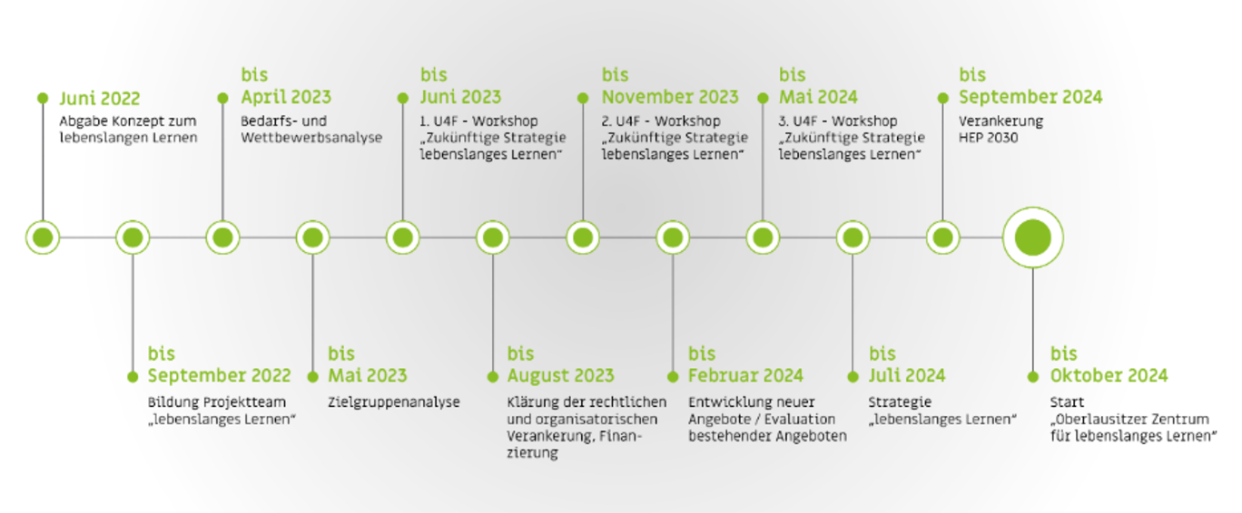 Lebenslanges Lernen ist für alle Menschen von großer Bedeutung und hat in den letzten Jahrzehnten steigende Aufmerksamkeit erhalten sowie Einzug in viele bildungspolitische Forderungen und Konzepte gefunden. Entsprechend dem Forschungsschwerpunkt der HSZG „Transformationsprozesse in Wirtschaft und Gesellschaft“ ist es ein strategisches Ziel der Hochschule, sich als Partnerin des lebenslangen Lernens zu etablieren und die institutionelle Brückenfunktion zwischen allgemeiner, beruflicher und akademischer Bildung für verschiedene Zielgruppen zu übernehmen. Um dieses Ziel zu erreichen, wurde unter Leitung der Prorektorin für Bildung und Internationales, Professorin Dr. Sophia Keil und der Stabsstelle Bildung ein Konzept zum lebenslangen Lernen an unserer Hochschule erstellt. Dieses ist Bestandteil der Zielvereinbarung zwischen dem Sächsischen Staatsministerium für Wissenschaft, Kultur und Tourismus (SMWK) und der Hochschule Zittau/Görlitz. Die Erarbeitung geschah partizipativ und damit ist das Konzept ein gemeinschaftliches Ergebnis von hochschulinternen und –externen ExpertInnen.