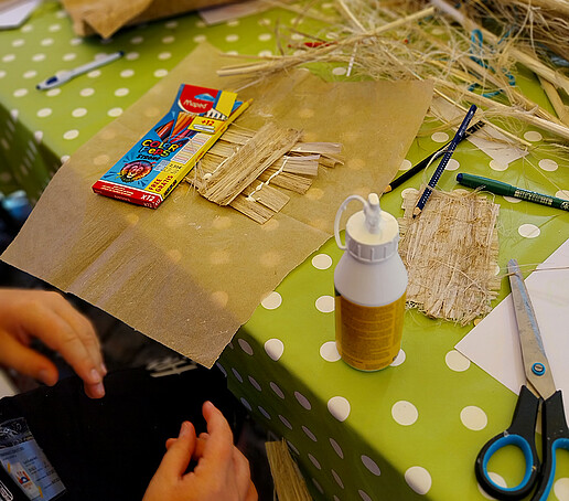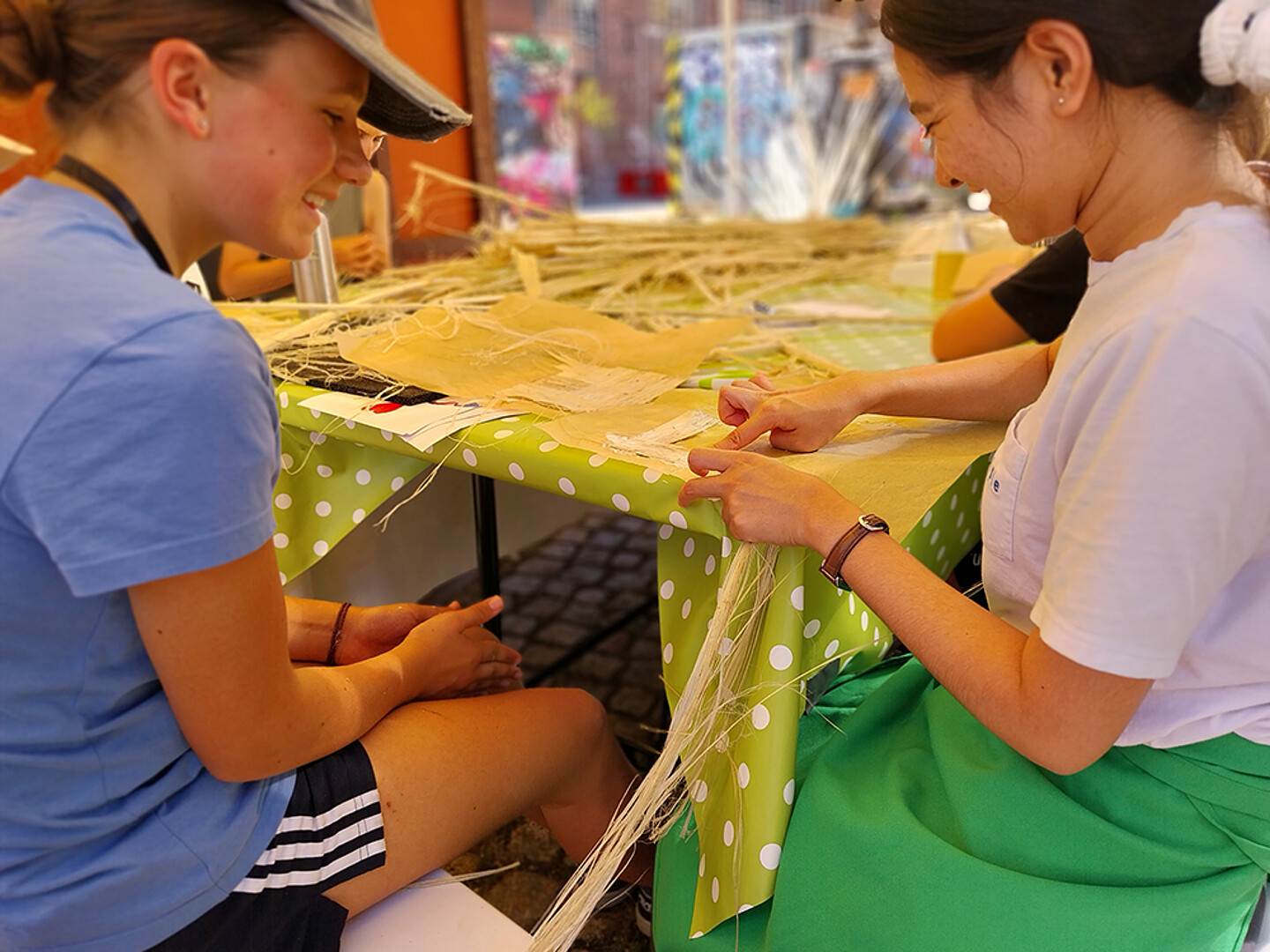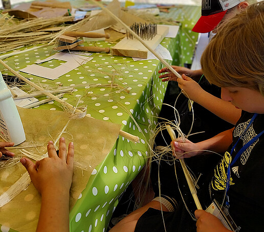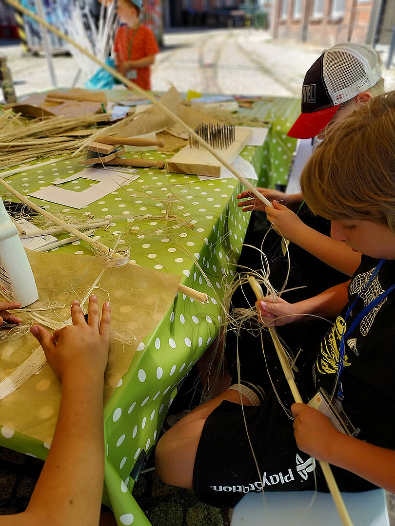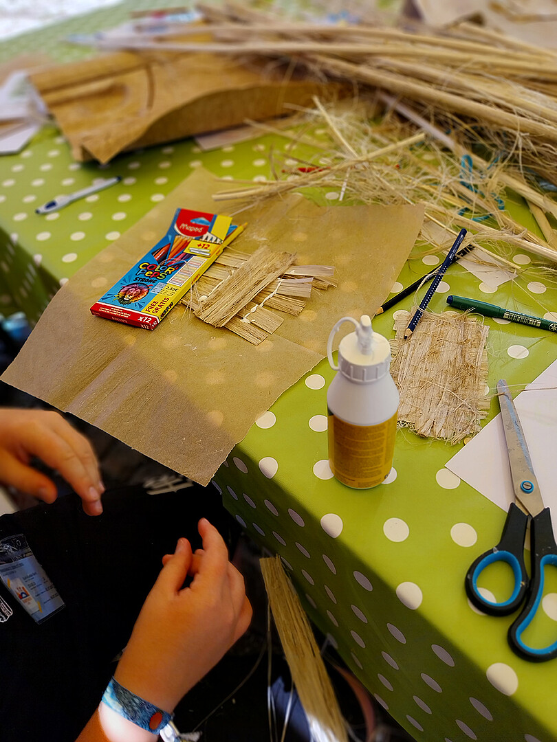 Hier wurde ein besonderes Projekt angeboten: Mit Unterstützung aus dem DLR_School_Lab konnten die Kinder Naturfasern zu Platten verarbeiten und diese mit dem Lasercutter weiterbearbeiten und individuell gestalten.