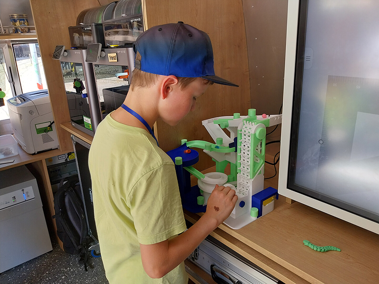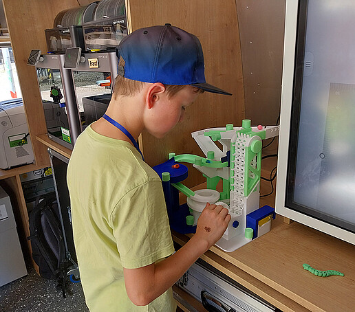 Zusätzlich konnten die Kinder auch andere spannende Technologien entdecken. Sie bedienten selbst einen Roboterarm, experimentierten mit dem 3D-Drucker und lernten, wie ein Mikroskop funktioniert. Trotz der heißen Temperaturen waren die Kinder sehr motiviert und zeigten großes Interesse, mehr zu lernen.