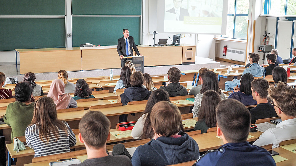 Am 1. Oktober 2018 nahmen rund 60 Studierende des Jahrgangs 2018 an der Einführungsveranstaltung der Fakultät „Wirtschaftswissenschaften und Wirtschaftsingenieurwesen“ teil. Der Dekan der Fakultät, Herr Prof. Erik Hahn, eröffnete das Studienjahr für die Studiengänge Betriebswirtschaft (WB18 und WBb18), Wirtschaftsingenieurwesen (WW18) und Wohnungs- und Immobilienwirtschaft (BWd18). Dazu gehörten Aussagen zur Organisation der Fakultät, zu Anforderungen an den bevorstehenden Studienprozess, zur guten Ausbildungsbasis für das Studium sowie zu den internationalen Beziehungen der Fakultät.