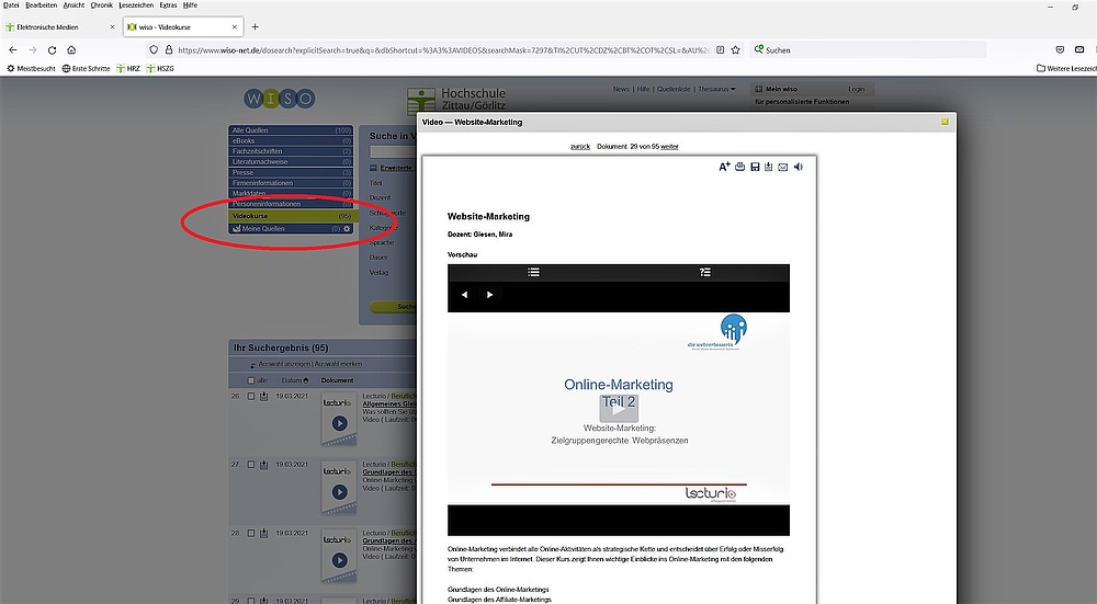 Bis zum 31. Dezember 2021 können die Videokurse von WISO getestet werden. Der Zugriff erfolgt über die Webseite der Hochschulbibliothek → Elektronische MedienWISO.