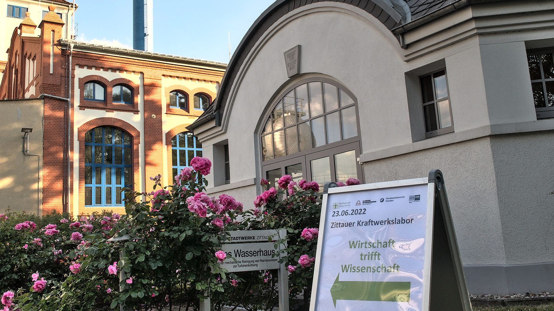 Zum nunmehr 13. Mal luden die Macher zur Abendveranstaltung „Wirtschaft trifft Wissenschaft“ ein; die Hochschule Zittau/Görlitz (HSZG), der Allgemeine Unternehmerverband Zittau und Umgebung e. V., die Handwerkskammer Dresden und die Geschäftsstellen Zittau und Görlitz der Industrie- und Handelskammer Dresden. Bei bestem Wetter trafen sich Unternehmer, Verwaltungsmitarbeiter und Hochschullehrer an einem interessanten Ort - dem Zittauer Kraftwerkslabor (ZKWL) der HSZG auf dem Gelände der Stadtwerke Zittau.