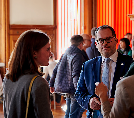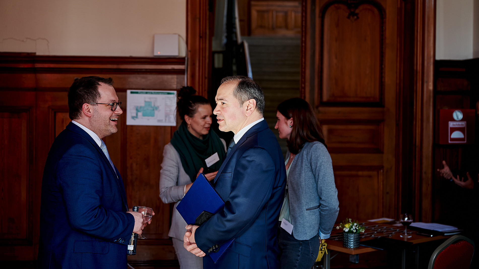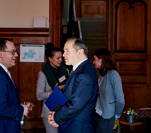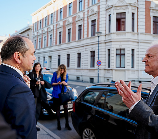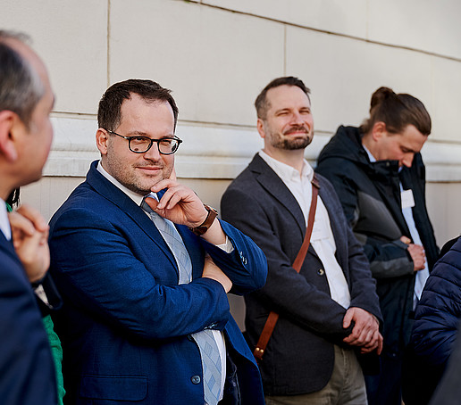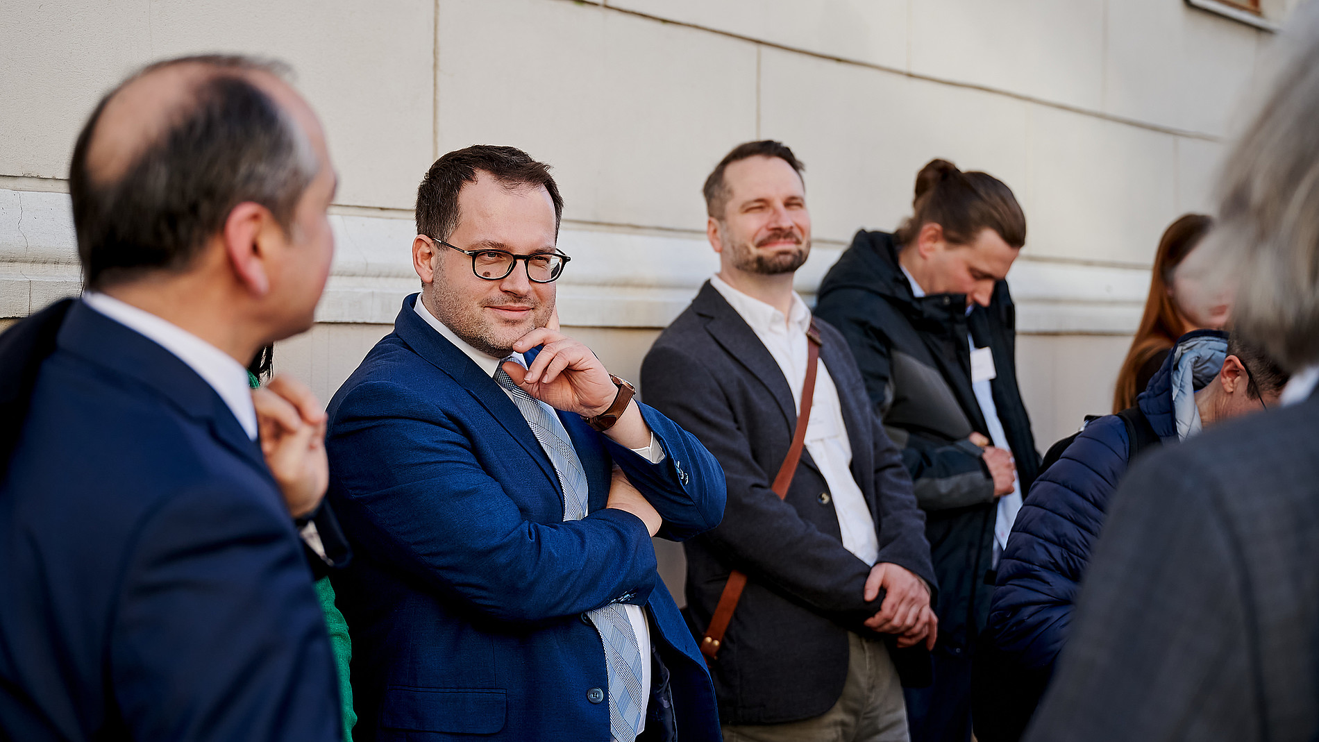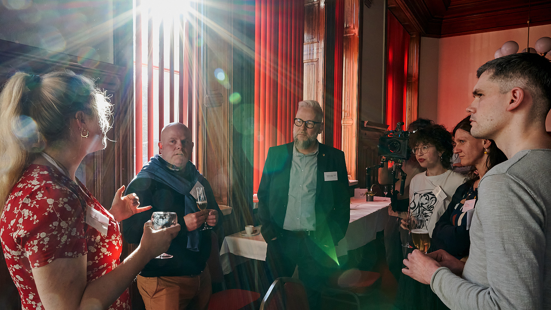 Im Anschluss an die Glückwünsche von Unterstützenden wie der Mitteldeutschen Medienförderung wurden die nahe gelegenen Seminarräumlichkeiten der Filmakademie in der Jakobstraße 5a besucht. Ein Ort, der mit den Dreharbeiten für den Kinofilm „Der Vorleser“ bereits Filmgeschichte geschrieben hat.