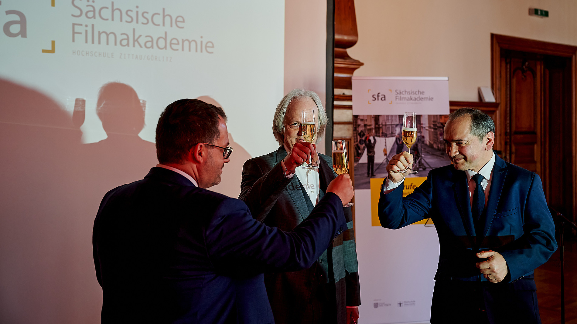 Zur feierlichen Eröffnungsveranstaltung kamen die Bildungsträger, die Kursteilnehmenden sowie die Dozierenden, Freunde und Fördernde der Filmakademie und Repräsentierende der Filmbranche im Festsaal der KommWohnen zusammen. Begrüßt wurden sie von Octavian Ursu, Oberbürgermeister der Stadt Görlitz und Prof. Dr.-Ing. Alexander Kratzsch, Rektor der Hochschule Zittau/Görlitz.