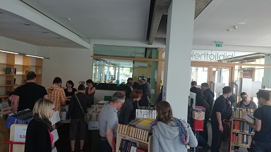 Zwar mussten sich einige Übereifrige bis zum Verkaufsstart gedulden, letztlich kamen aber viele unserer Nutzer zum Zuge und konnten auf den Verkaufstischen ihre persönlichen Schnäppchen in den ausgesonderten Fachbüchern und anderen Medien finden. Am Ende konnten durch die Flohmärkte an beiden Standorten über 900 Euro eingenommen werden, die direkt in die Beschaffung neuer Bücher einfließen.