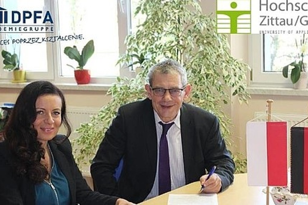 Die Hochschule Zittau/Görlitz (HSZG) eröffnete kürzlich ihr erstes Auslandsbüro in der Görlitzer Schwesterstadt Zgorzelec. Seit 1. November 2018 können sich Studieninteressierte und deren Eltern regelmäßig zum Studienangebot der HSZG beraten lassen. Die Außenstelle befindet sich im Schulgebäude der DPFA EUROPRYMUS Sp. z o. o., einem Unternehmen der DPFA Akademiegruppe. Die HSZG erhofft sich dadurch einen besseren Kontakt zu polnischen Kooperationspartnern. Zudem sollen die attraktiven Studienbedingungen der Hochschule Zittau/Görlitz und Erfolgschancen nach einem erfolgreich abgeschlossen Studium vermehrt auch polnischen Bewerber*innen zugänglich gemacht werden.
