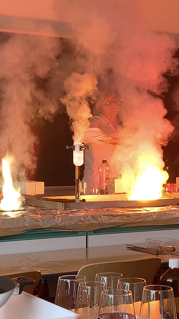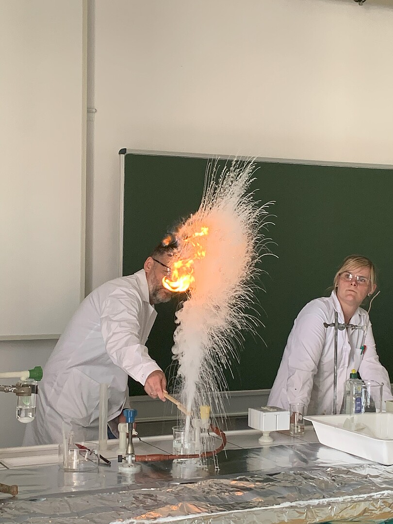 Nach der Siegerehrung und Prämierung aller Teams fand für die Schülerinnen und Schüler und Gäste eine kleine Experimentalvorlesung mit zahlreichen interessanten Schauversuchen statt. Dabei wurde dem Publikum auch der chemische Hintergrund der durchgeführten Experimente erläutert.