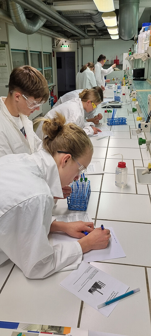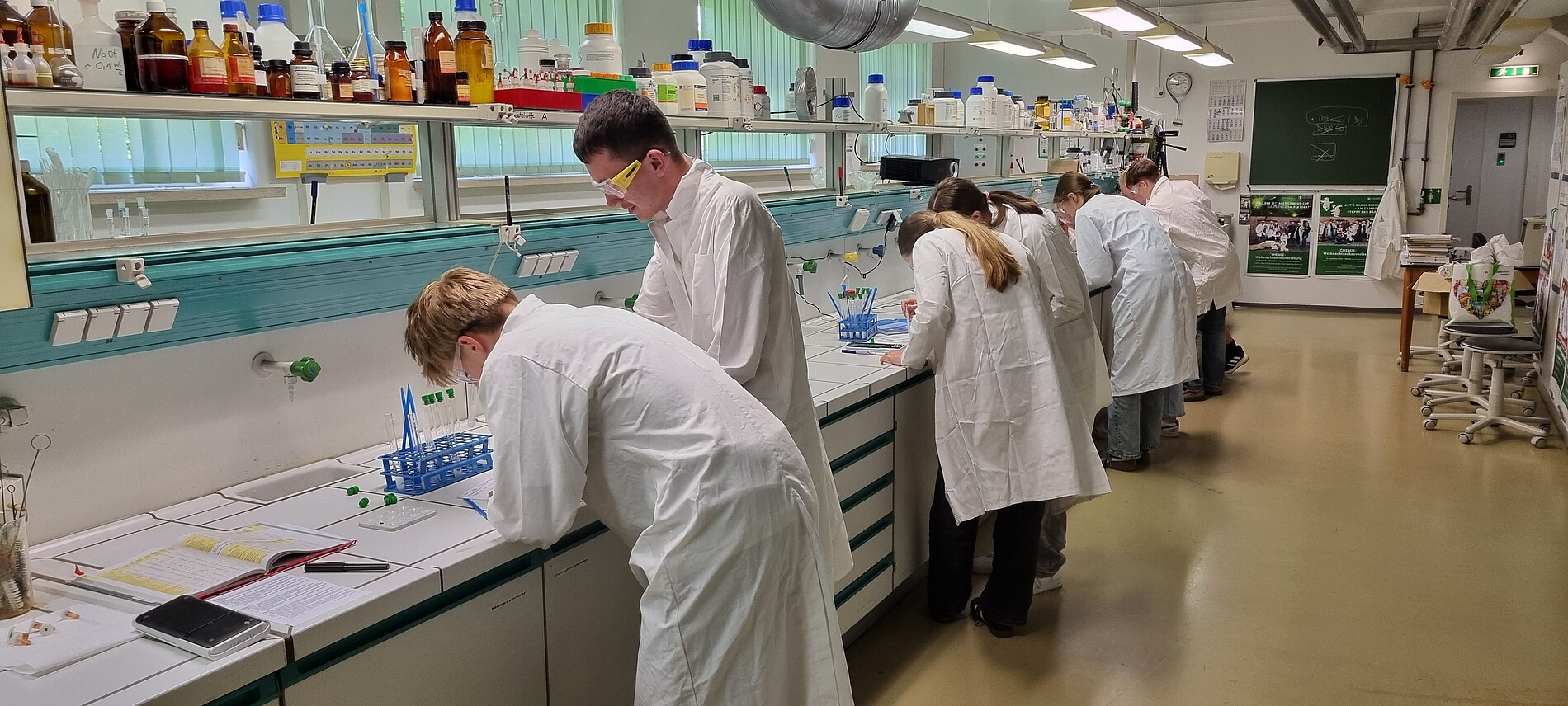 Die Schülerteams, die sich in der ersten Stufe des Leistungsvergleichs in den Gymnasien durchsetzen konnten, wetteiferten bei chemischen Berechnungen und experimentellen Aufgaben im Labor um eine möglichst gute Platzierung. In diesem Jahr qualifizierten sich Schülerteams folgender Schulen für die Endrunde: