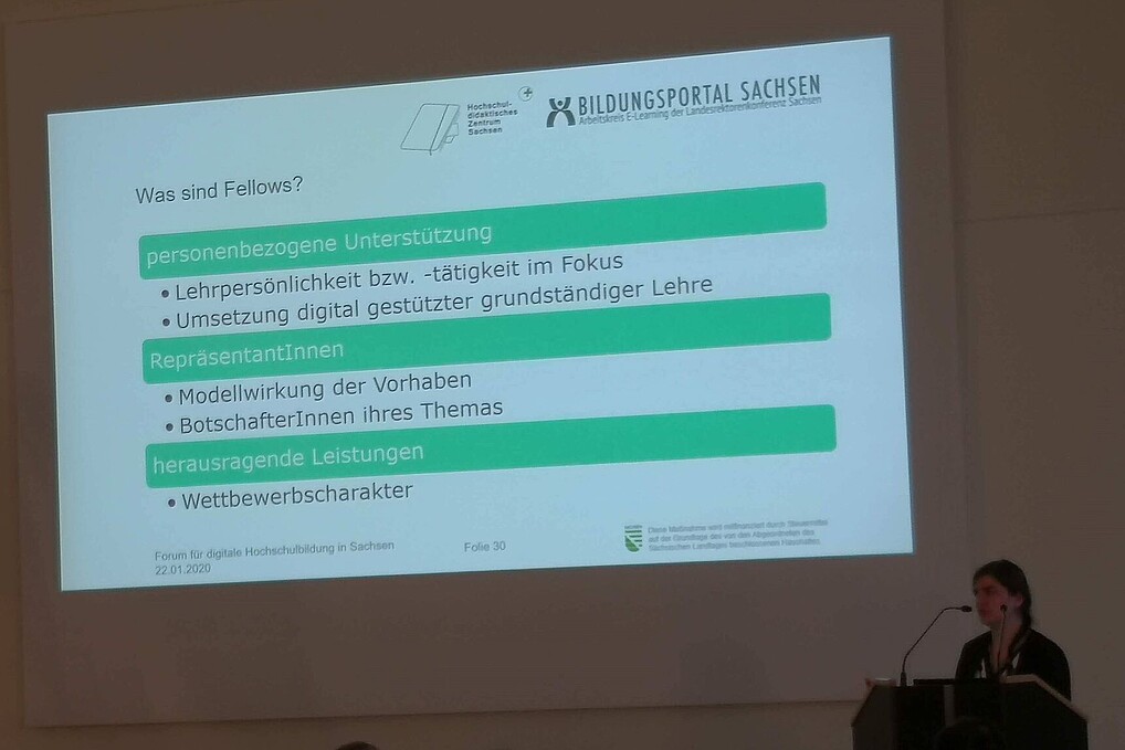Das SMWK unterstützt seit 2019 die Kooperation des Hochschuldidaktischen Zentrums Sachsen und des Arbeitskreises E-Learning der Landesrektorenkonferenz "Digitale Hochschulbildung in Sachsen" mit jährlich rund 750.000 Euro. Die Förderung beinhaltet unter anderem das Digital-Fellows-Programm. Hier entwickeln Lehrende ihre eigene Lehrtätigkeit und -persönlichkeit unter Nutzung digitaler Medien weiter. Damit leisten sie einen Beitrag zur Digitalisierung der sächsischen Hochschullehre in der grundständigen Ausbildung Studierender. Digital Fellows sind damit Repräsentant_innen für einen spezifischen Ansatz, digitale Medien zur Optimierung ihrer Lehre zu nutzen. Diese Vorhaben sollen eine Modellwirkung für andere Lehrende entwickeln und werden von den Digital Fellows öffentlich vorgestellt und diskutiert. Unter den 43 Digital Fellows zur Weiterentwicklung der digitalisierten Hochschulbildung stellten auch Mitarbeiter der HSZG erste Ergebnisse Ihrer Digital-Fellowships-Projekte vor:
