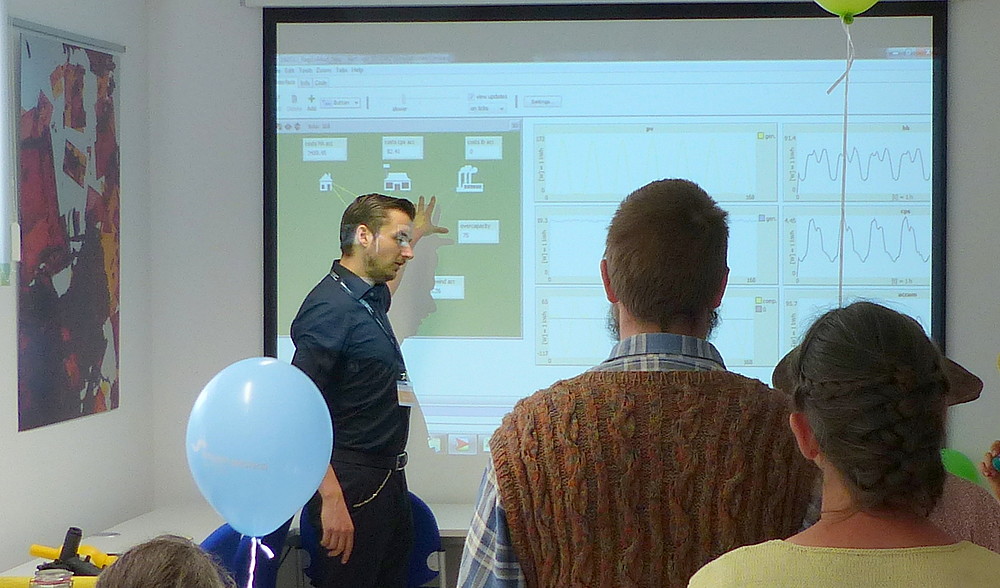 Anhand einer vorbereiteten Simulationsrechnung mit entsprechender Visualisierung der Ergebnisse, wurde den vielen interessierten ZuhörerInnen ein Eindruck über das regionale Energieversorgungssystem vermittelt und welche Hürden dabei auf dem Weg zu einer erfolgreichen Energiewende zu meistern sind. Dabei wurde angeregt nachgefragt, diskutiert und beratschlagt, welchen Einfluss Erneuerbare Energien auf das Versorgungssystem haben, welche Alternativtechnologien sich anbieten und wie Verbraucher in Zukunft in das Gesamtsystem Energieversorgung einbezogen werden müssen.