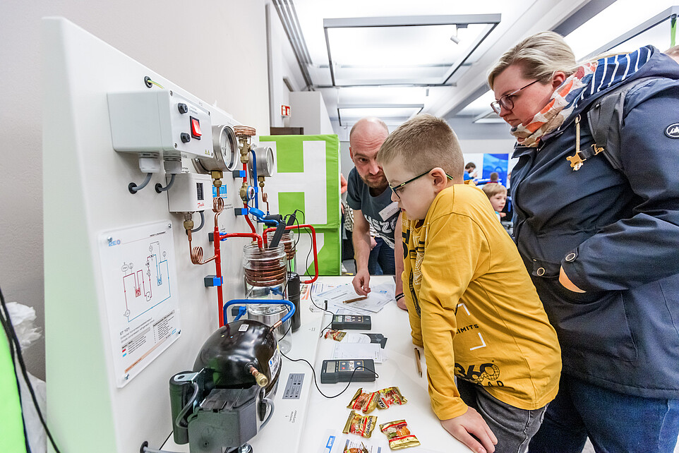 Am Exponat „Wie funktioniert eine Wärmepumpe“ erklärten Martin Herling und Mareike Schneider das Funktionsprinzip, was bei vielen Besuchenden für Aha-Momente sorgte. Hochwertige Gespräche fanden auch in den Workshops "Zivilgesellschaft, bürgerschaftliches Engagement und soziale Innovationen" mit dem Prorektor für Forschung Prof. Raj Kollmorgen und Leonie Liemich sowie "Die Energiewende für dein Zuhause" mit Prof. Matthias Kunick und Mareike Schneider statt.