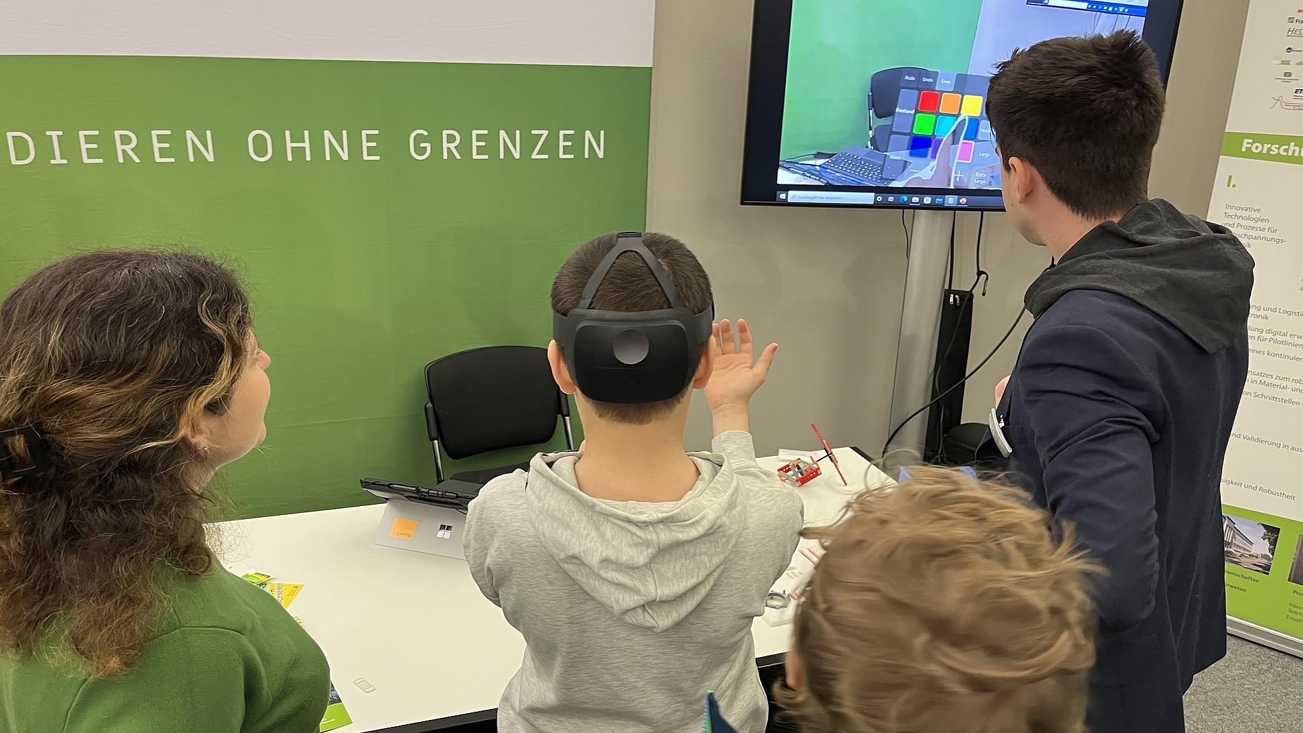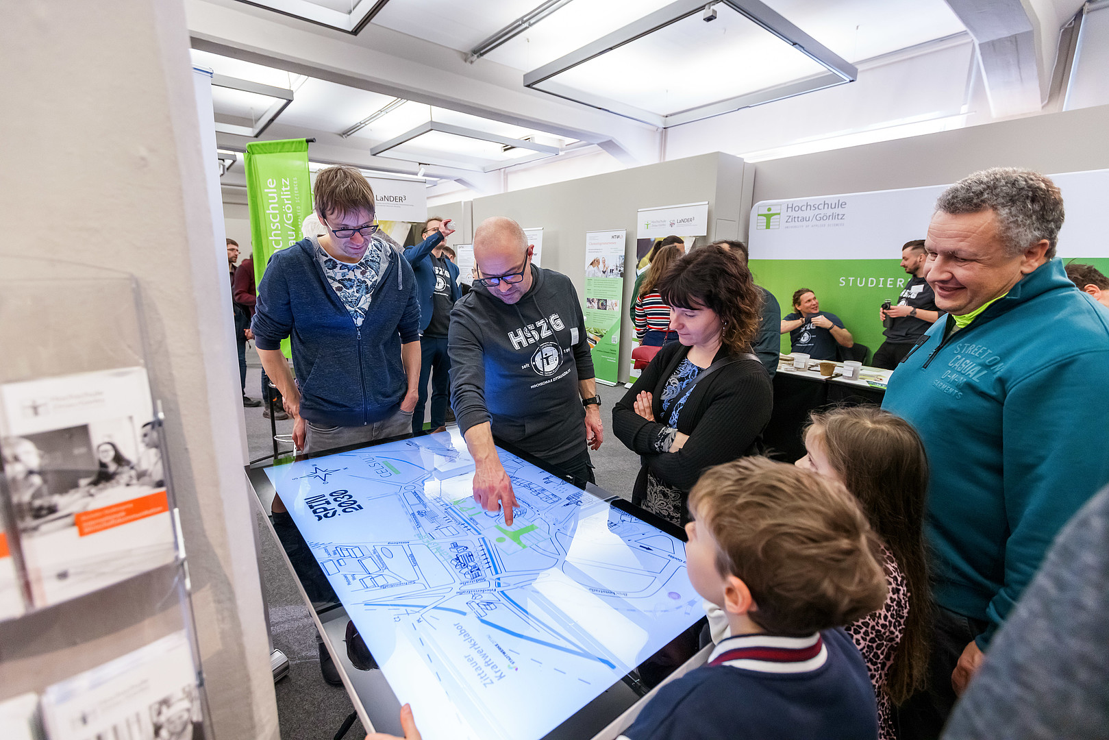 Der legendäre „Wischtisch“ von Andre Seeliger und Thomas Schäfer ermöglichte interaktive Einblicke in die Versuchsanlagen des Zittauer Kraftwerkslabors und sorgte sogar für berührende Begegnungen. Etwa als eine Alumna ihrem Enkel das Gebäude zeigte, in dem sie studiert hatte und beim digitalen „Air-Hockey“, das für herzliches Kinderlachen am HSZG-Stand sorgte.