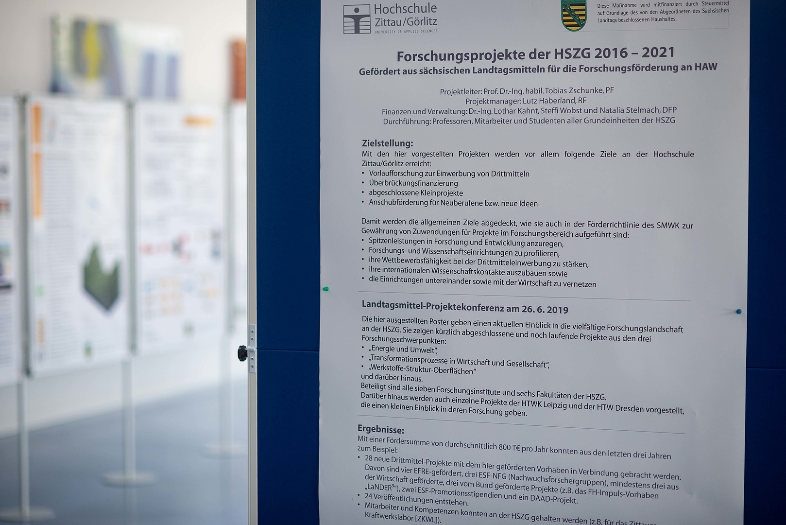 Wissenschaftler von der HSZG, HTW Dresden sowie HTWK Leipzig präsentieren gemeinsam und kompakt ihre Forschungsergebnisse auf der Landtagsmittelprojektekonferenz.