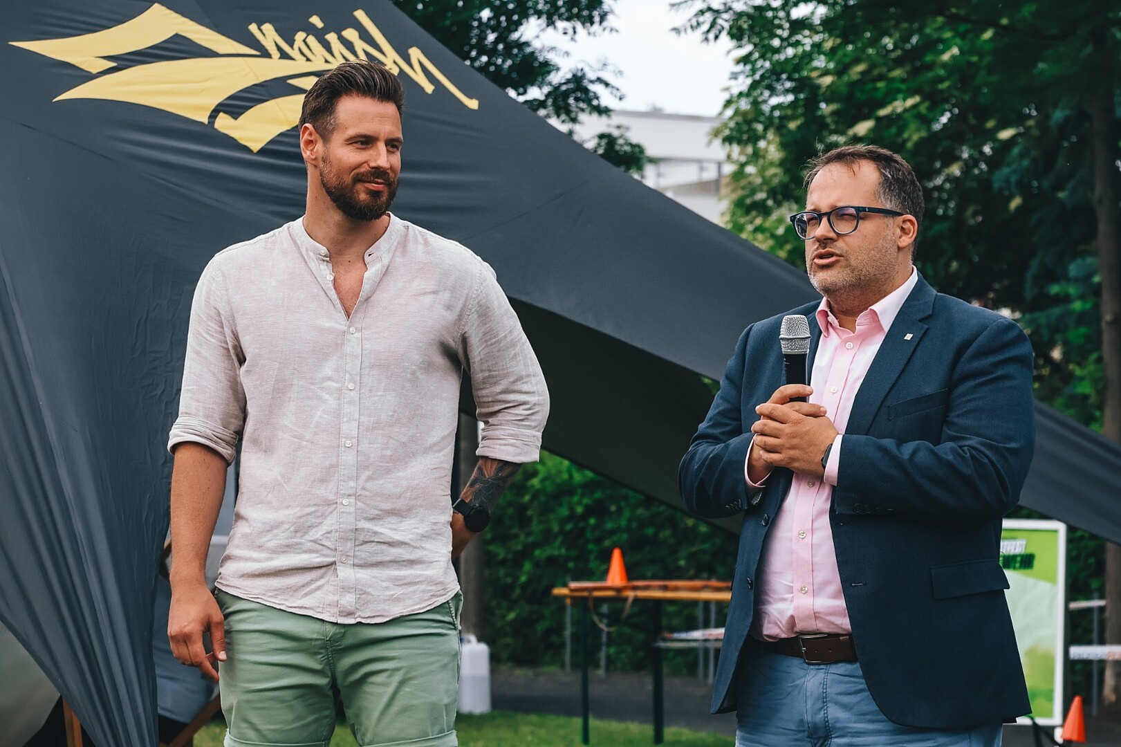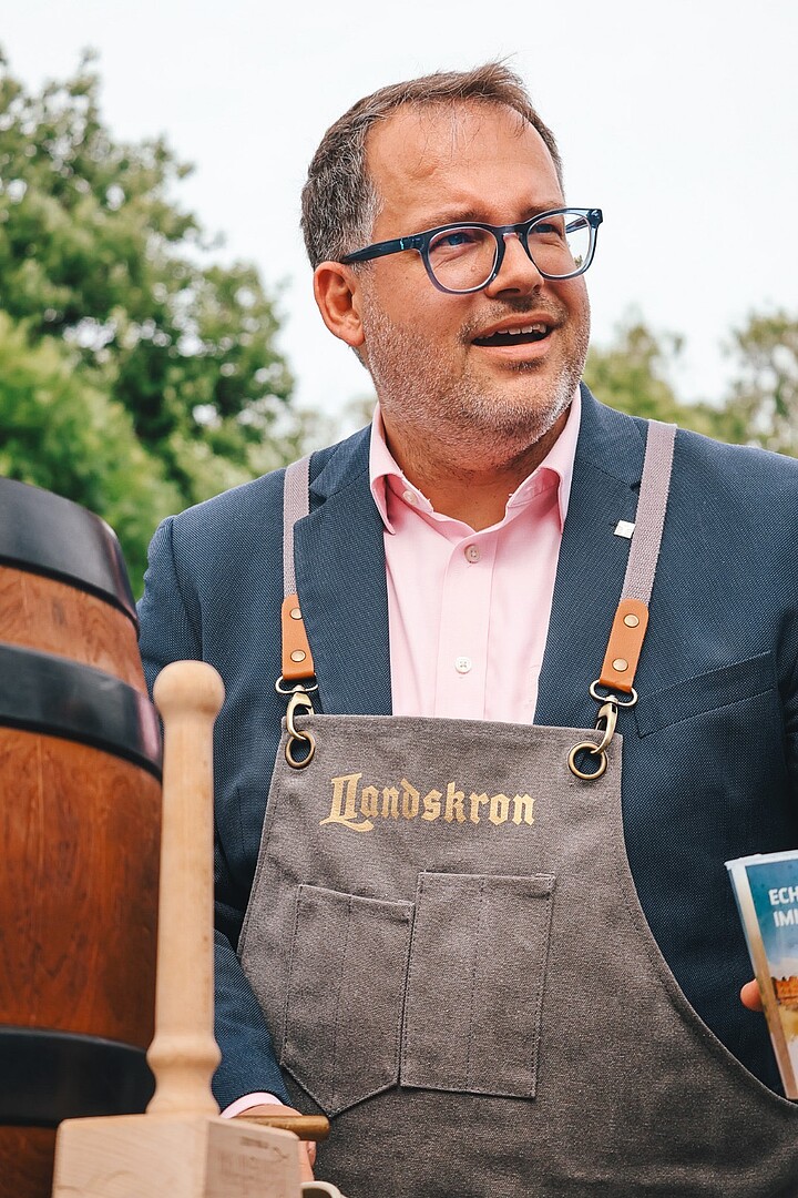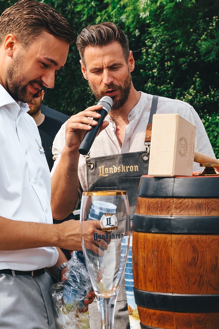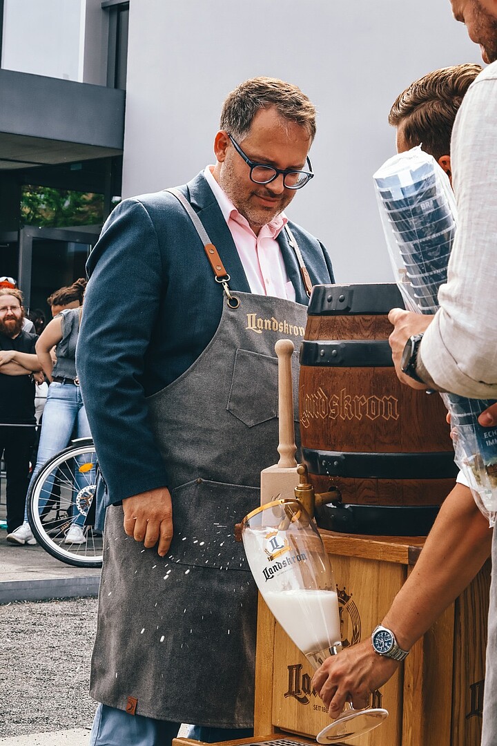 Nicht nur für Spaß und Bewegung, auch für das leibliche Wohl war gesorgt. Zittau Vegan sorgte für köstliche, pflanzliche Gerichte, während die Dezi Bar mit Getränken und Gegrilltem zum Schlemmen einlud. Ein weiteres Highlight war der Fassanstich zur Eröffnung des Festes für die Mitarbeitenden der Hochschule Zittau/Görlitz, unterstützt von der Landskron Brauerei. Rektor Professor Alexander Kratzsch schlug professionell den Zapfhahn in das Fass ein und lud zum Verweilen mit Kolleginnen und Kollegen auf der Campusachse.
