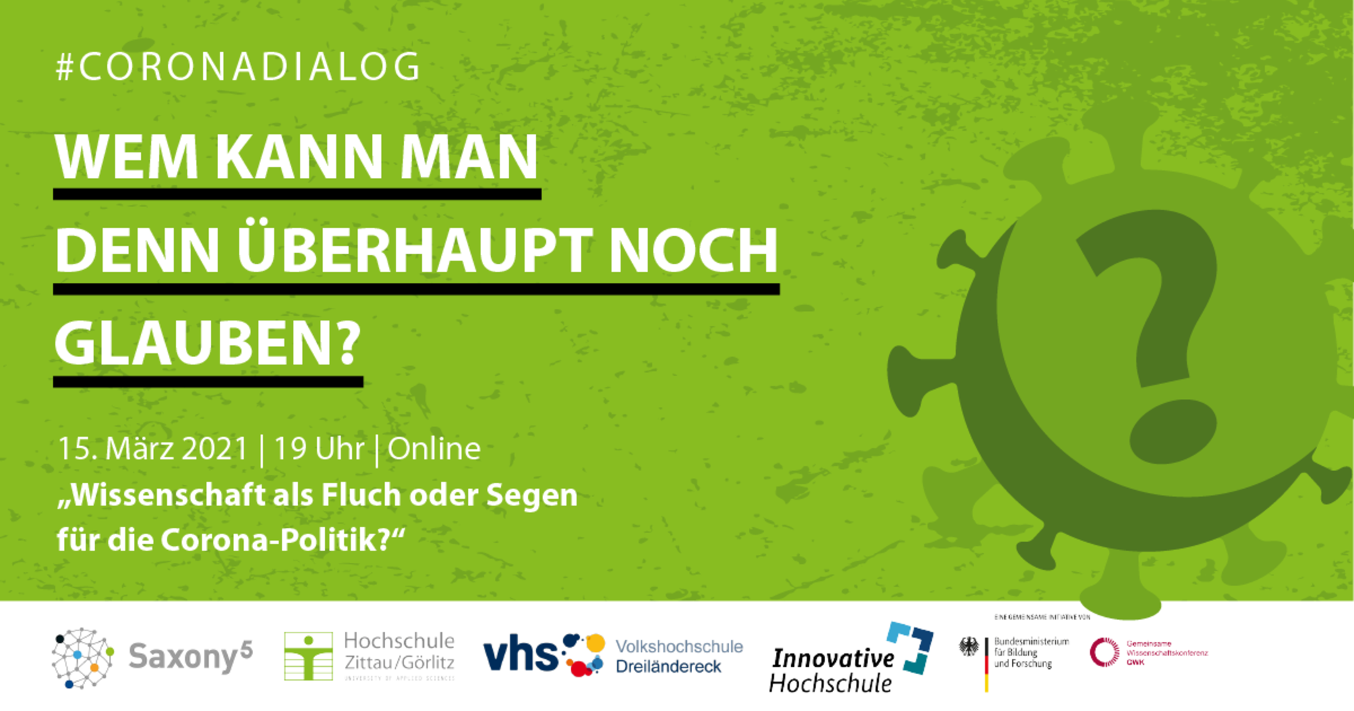 Der 2. #CoronaDialog zum Thema „Wissenschaft als Fluch oder Segen für die Corona-Politik?“ findet am 15. März 2021 um 19 Uhr online statt. Unsere Gäste sind: