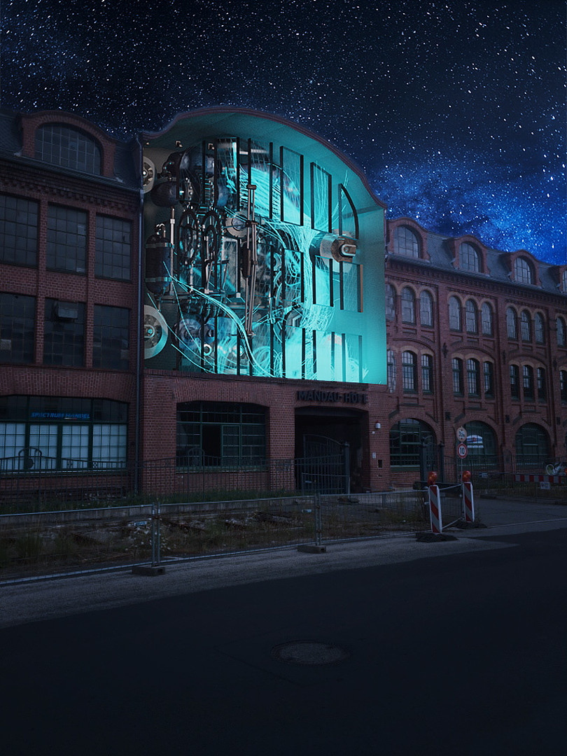 Um der wichtigen Geschichte des Werks I, nun Mandau-Höfe, für die Stadt gerecht zu werden und viele Bürger*innen mit in die Welt der Versorgungsinfrastruktur zu nehmen, bereitet das Projekt-Team von Saxony5 eine computeranimierte Lichtinstallation gemeinsam mit dem international renommierten „Stroy-Studio" vor.