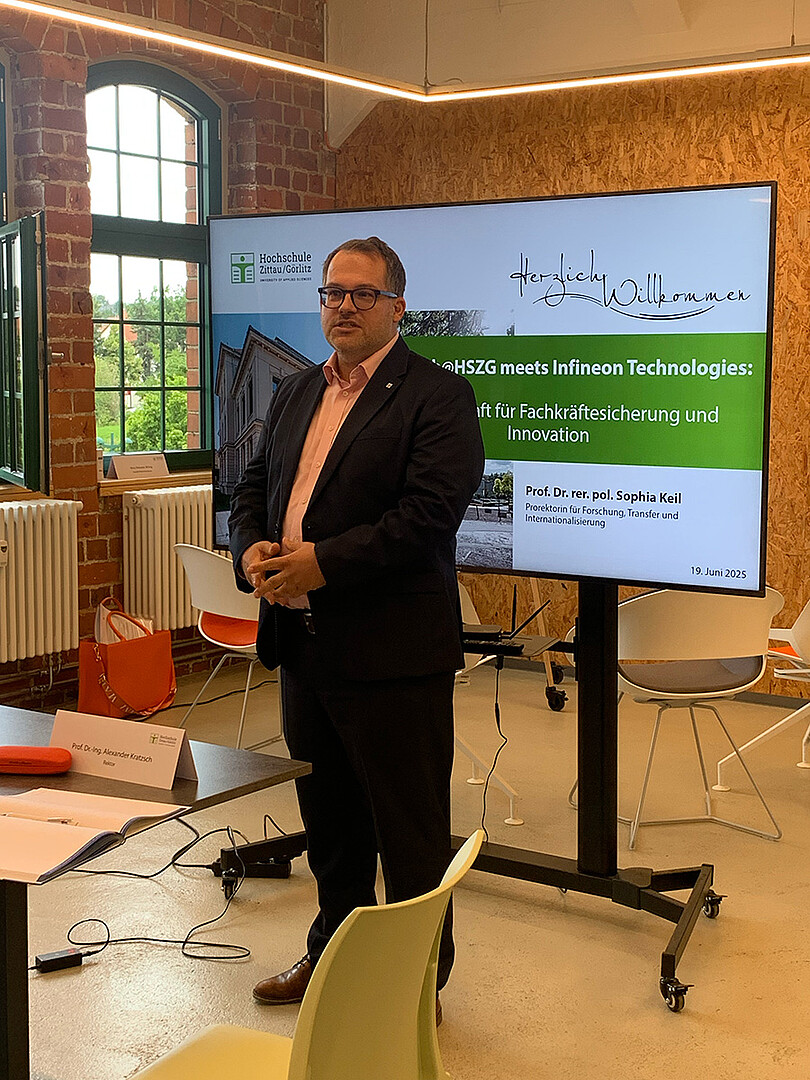Am 19. Juni 2025 lud die Hochschule Zittau/Görlitz unter der Federführung von Prof. Dr. Sophia Keil, Prorektorin für Forschung, Transfer und Internationalisierung, Vertreterinnen und Vertreter von Infineon aus Dresden zum Workshop „HighTech@HSZG meets Infineon Technologies: Partnerschaft für Fachkräftesicherung und Innovation“ ins Celsiuz Co-Creation Lab nach Zittau ein.