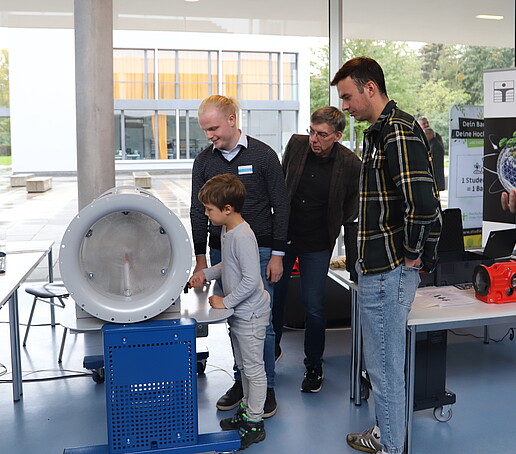Über 150 Besuchende nutzten außerdem die Möglichkeit, einen Blick in die Hochspannungshalle zu werfen. Dort gab es die seltene Gelegenheit, nach den Experimentalvorlesungen "Hochspannungstechnik", direkt die Anlagen zu besichtigen. Dabei zeigten sich viele Gäste sehr interessiert an der Technologie und an den Studienangeboten im Bereich Elektrische Energietechnik.