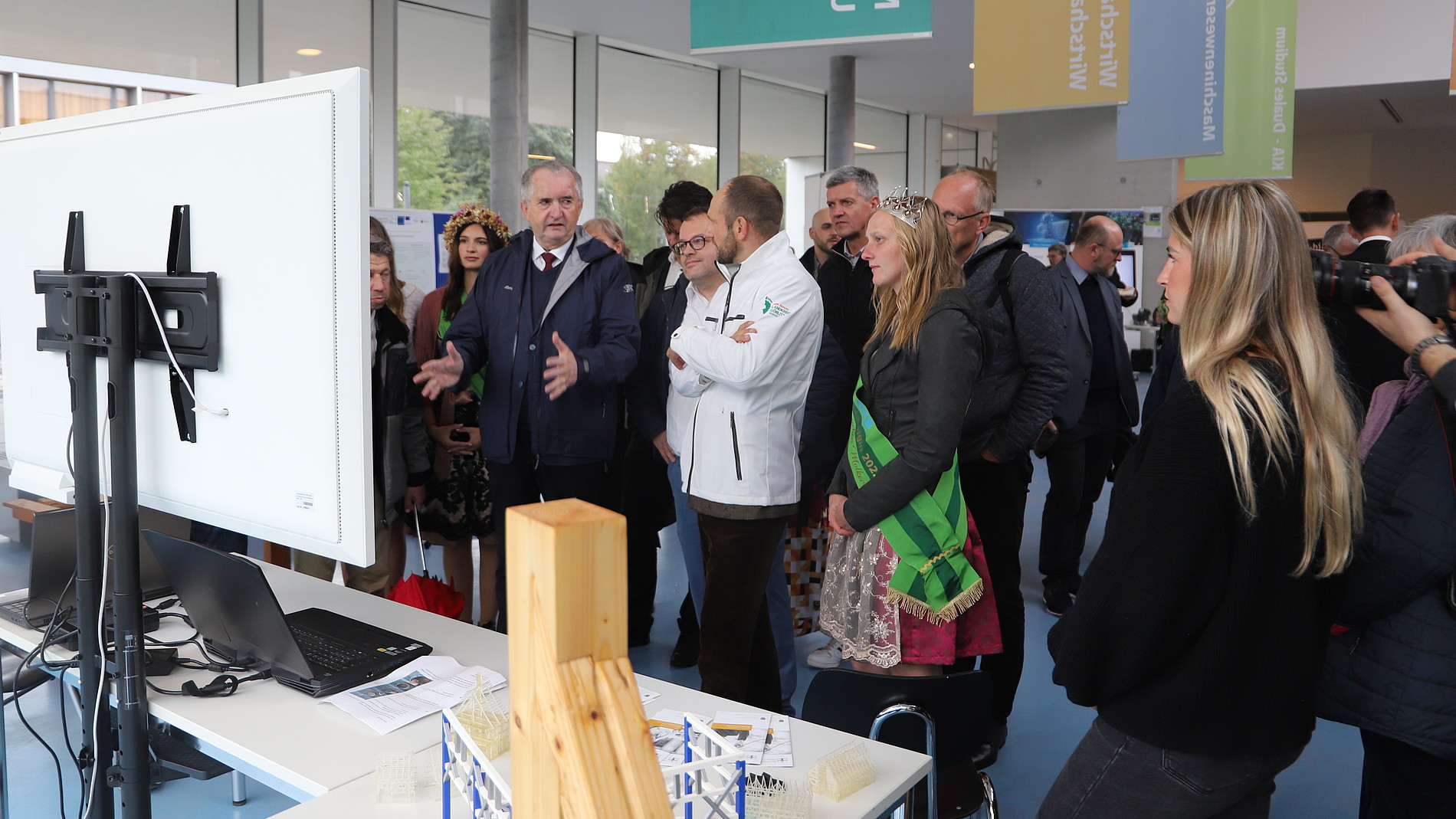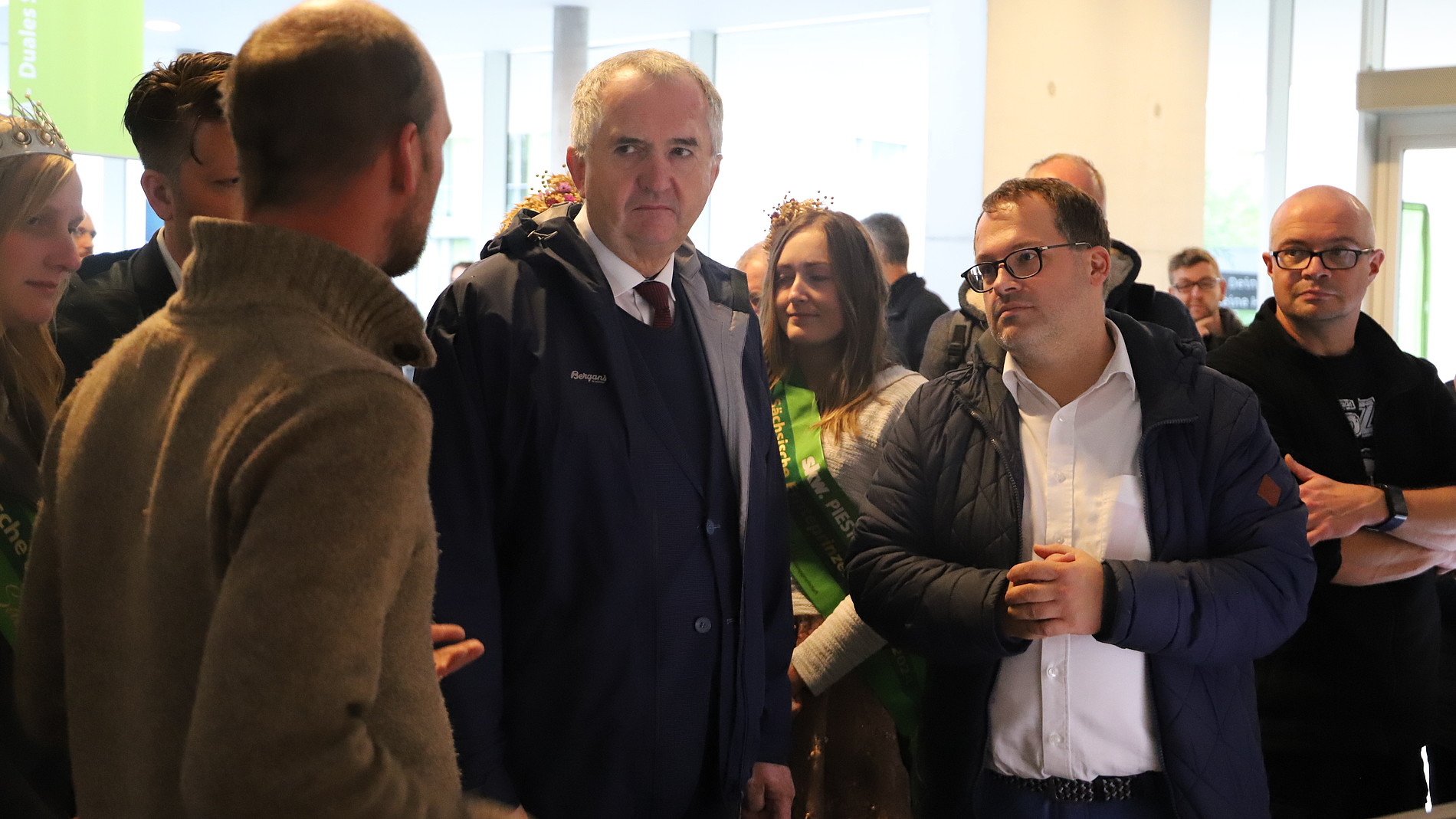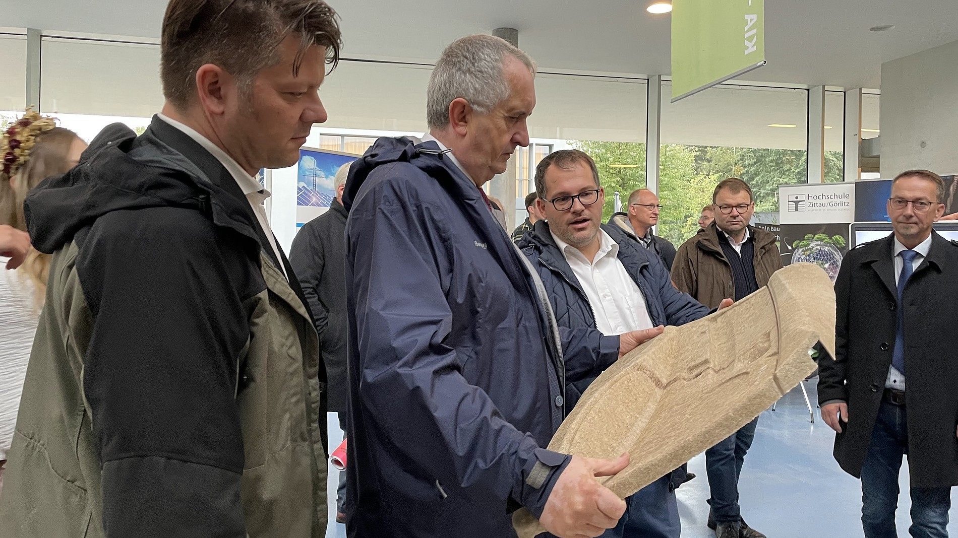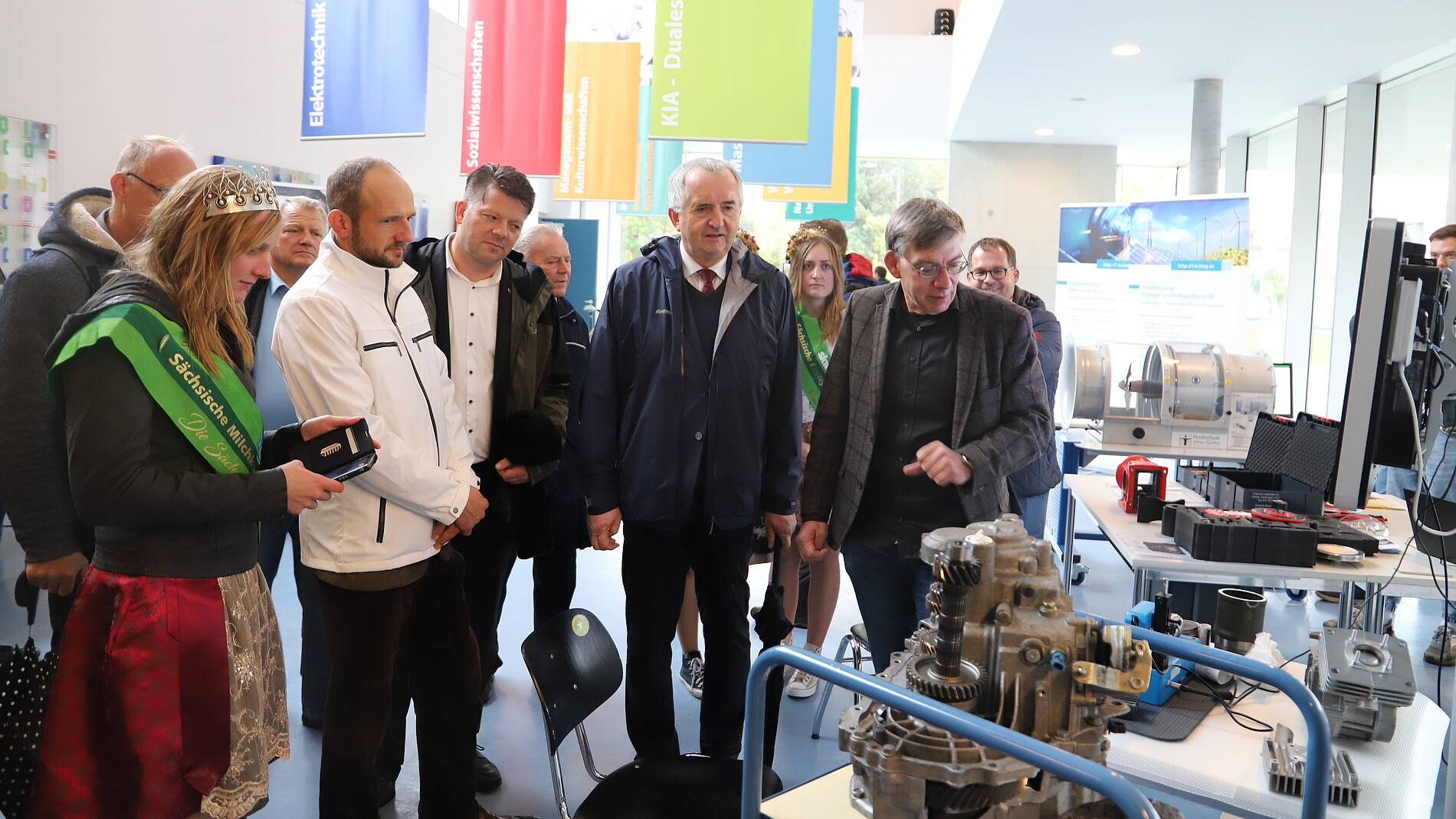 Am Samstag besichtigte der Staatsminister für Regionalentwicklung Thomas Schmidt unseren Campus gemeinsam mit einer Delegation, der neben anderen Landrat Stephan Meyer, Oberbürgermeister Thomas Zenker, die sächsische Erntekönigin und die sächsische Ernteprinzessin angehörten. Trotz eines straffen Zeitplanes nahm sich der Schirmherr des Festes die Zeit alle Stationen im Haus Z IV zu besichtigen. Bemerkenswert dabei: Das war in dieser Woche bereits sein zweiter Besuch an unserer Hochschule. Im Vorfeld des Landeserntedankfestes nahm Schmidt am simul+-Innovationstag zu den Themen „Energie, Kreislaufwirtschaft, Bauen und Mobilität“ teil, welcher am Zittauer Campus stattfand. Im Nachgang der Veranstaltung appellierte der Minister an die jungen Menschen der Region: