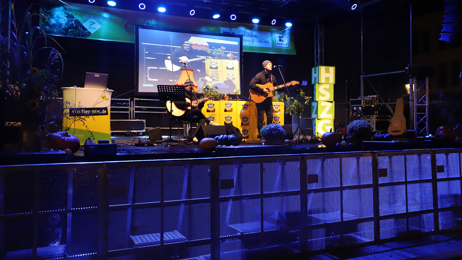 Eine tolle Resonanz bekam auch das Bühnenprogramm der HSZG am Samstagabend. Unter dem Motto "Wir leben Science, Wir lieben Music - Science meets Music!" präsentierten unter anderem Prof. Jens Weber (Fakultät Natur- und Umweltwissenschaften) und Dr. Clemens Schneider (Fraunhofer IEG Zittau) Science-Slam-Beiträge. Es gab ein Science-Quiz, DJ-Musik sowie deutschsprachige Akkustikmusik der Band "Audiolyse" mit Frontmann Felix Rothe (Fakultät Maschinenwesen).