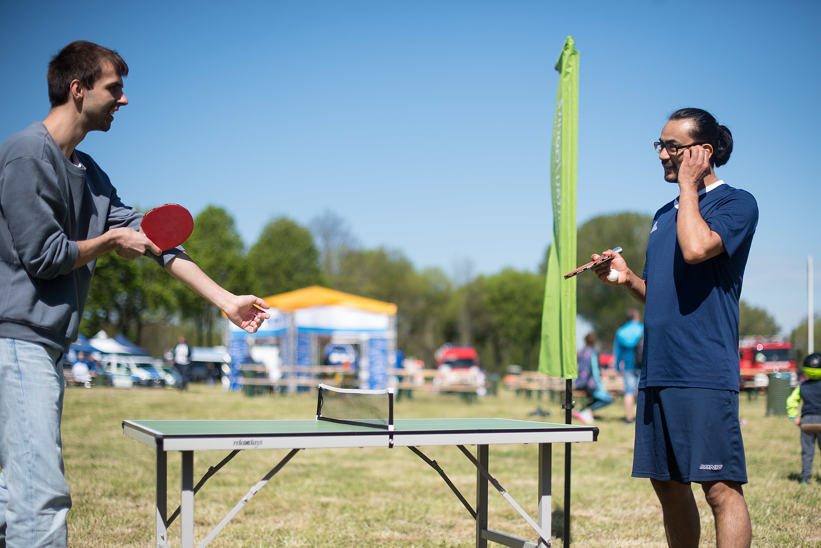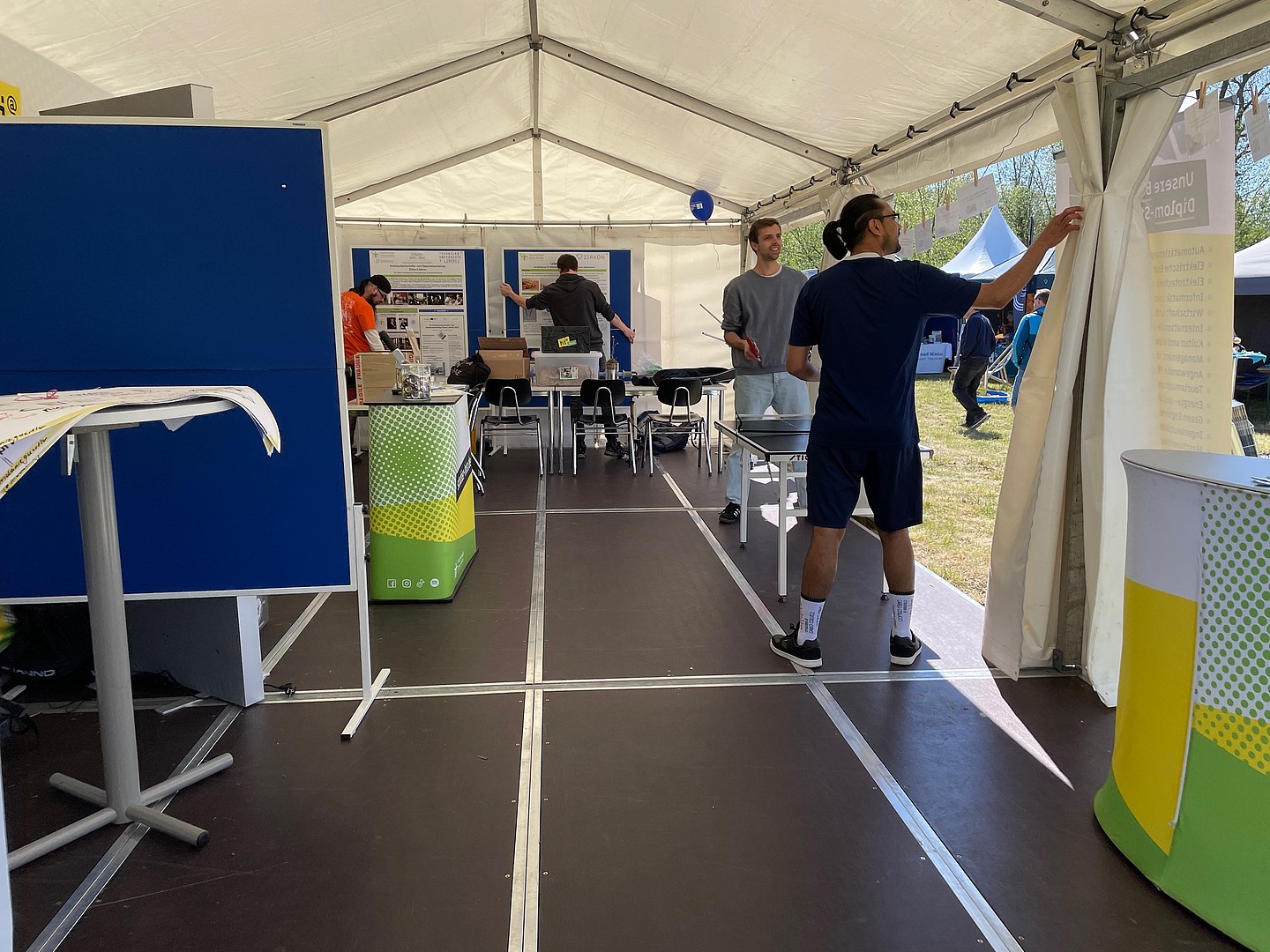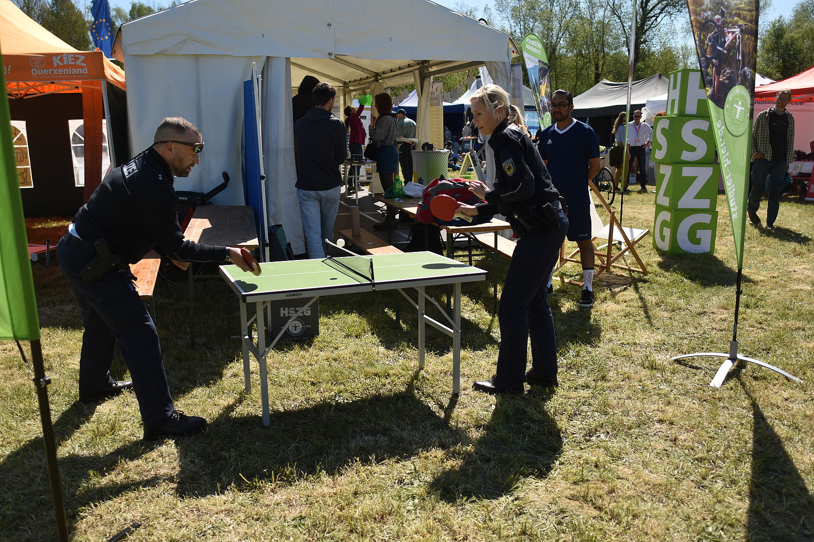 Unser Hochschulsport war ebenfalls vor Ort und zog mit seinen Minitischtennisplatten selbst Streife gehende Polizist*innen in seinen Bann.
