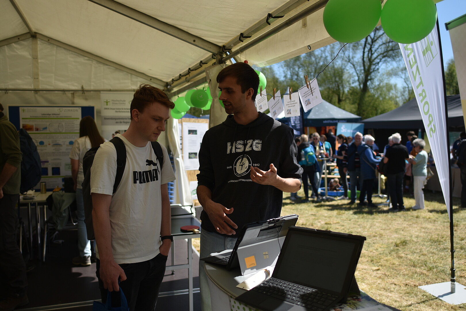 Die HSZG war mit einem großen Pavillon vertreten, der auf der Festwiese am Neißeufer aufgebaut war. Interessierte Besucher*innen konnten sich über folgende Forschungsthemen informieren: