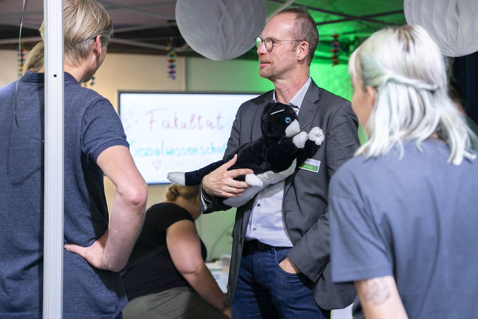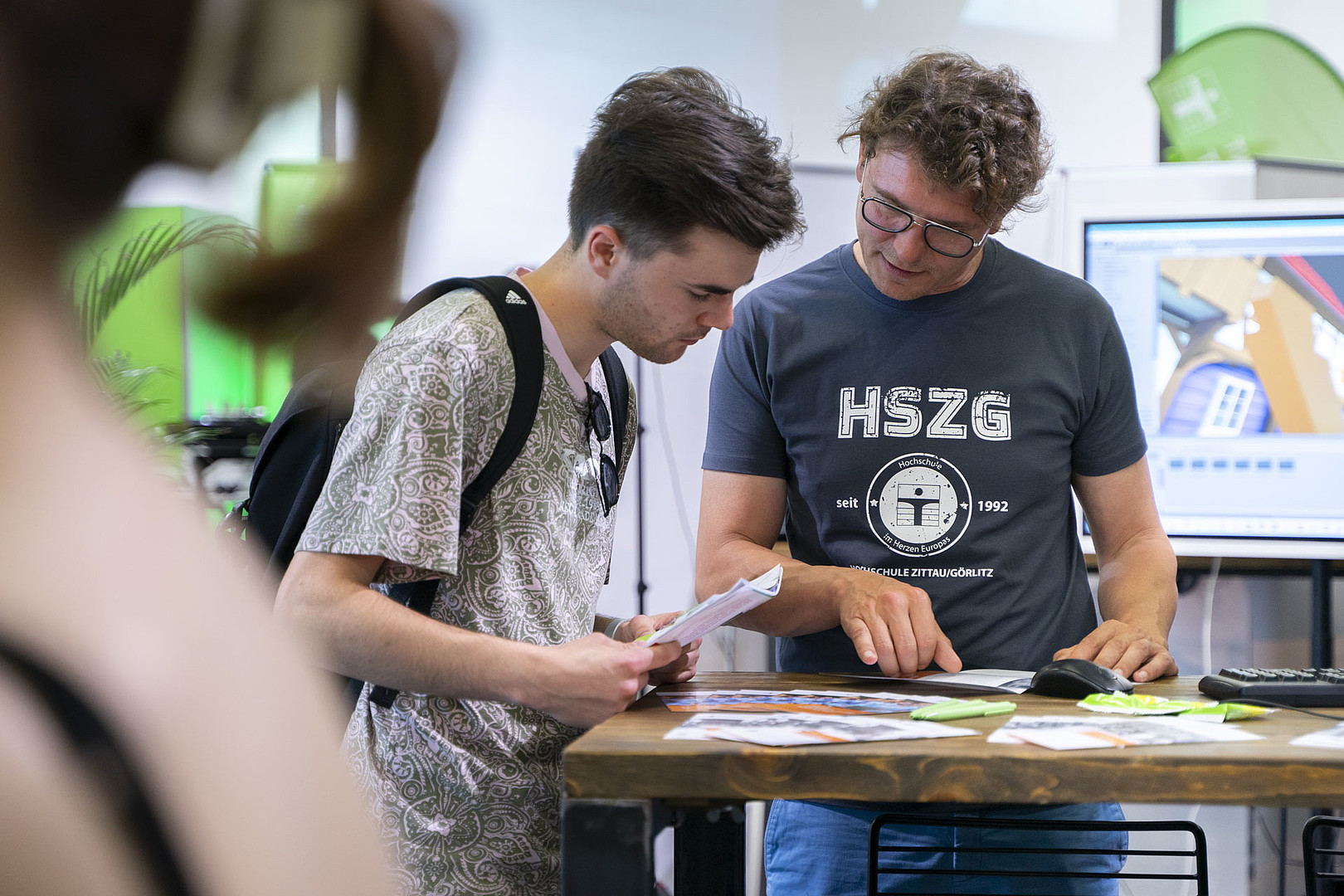 Die Studienberatung der HSZG bot individuelle Beratungen zu Studienwahl und Bewerbungsverfahren an. Expert*innen informierten über das neu geplante Studienangebot im Bereich Lehrausbildung. Neben den Studiengängen wurden erstmalig auch die Karrieremöglichkeiten an der HSZG beworben. Vor Ort konnte man sich über aktuelle Stellenausschreibungen informieren und gezielt nachfragen. „Von den Studienberater*innen über die Professorinnen und Professoren und weiteren Standbetreuenden bis hin zum Social Media-Team der Hochschule, alle standen den Interessierten mit Rat und Tat zur Seite und beantworteten sämtliche Fragen rund um das Studium an der HSZG. Ihnen allen gebührt ein großer Dank“, so Rektor Alexander Kratzsch.