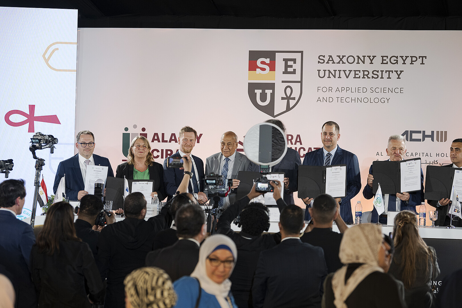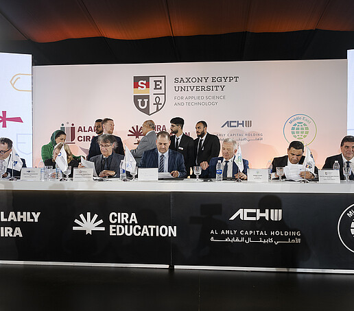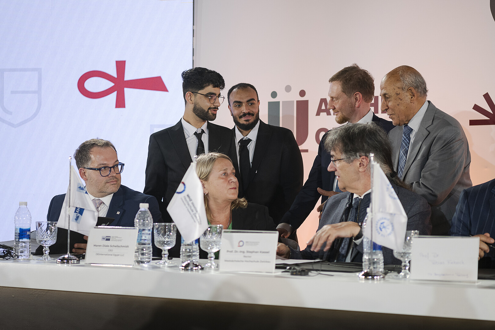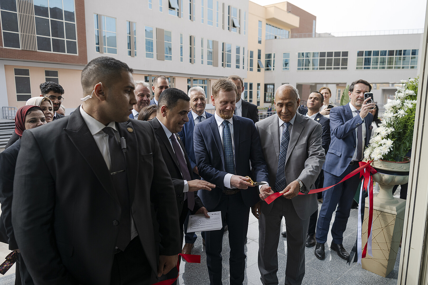 Im Rahmen der feierlichen Eröffnung der ersten sächsisch-ägyptischen Universität in Kairo - Saxony Egypt University for Applied Science & Technology (SEU) - haben der Freistaat Sachsen und Ägypten ihre Bildungskooperation deutlich ausgeweitet. Die Hochschule Zittau/Görlitz spielt dabei eine zentrale Rolle: Rektor Prof. Dr.-Ing. Alexander Kratzsch begleitete Ministerpräsident Michael Kretschmer auf dessen Reise nach Ägypten und unterzeichnete vor Ort eine Kooperationsvereinbarung (Memorandum of Understanding) mit der neu gegründeten Universität.
