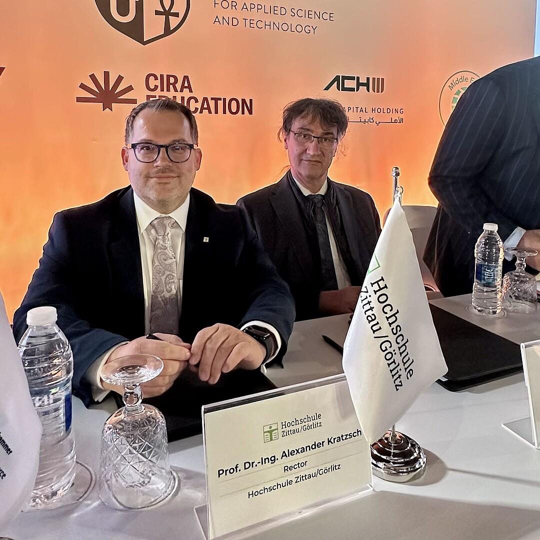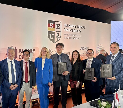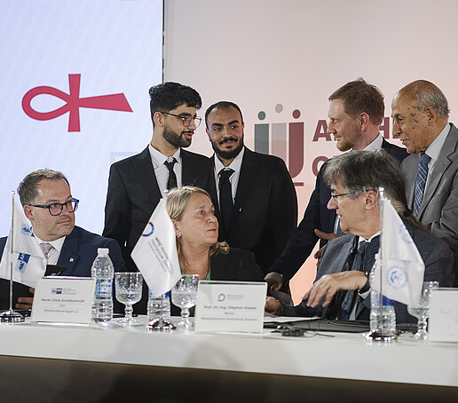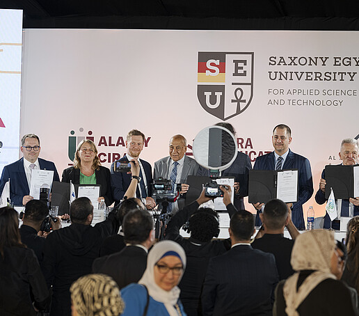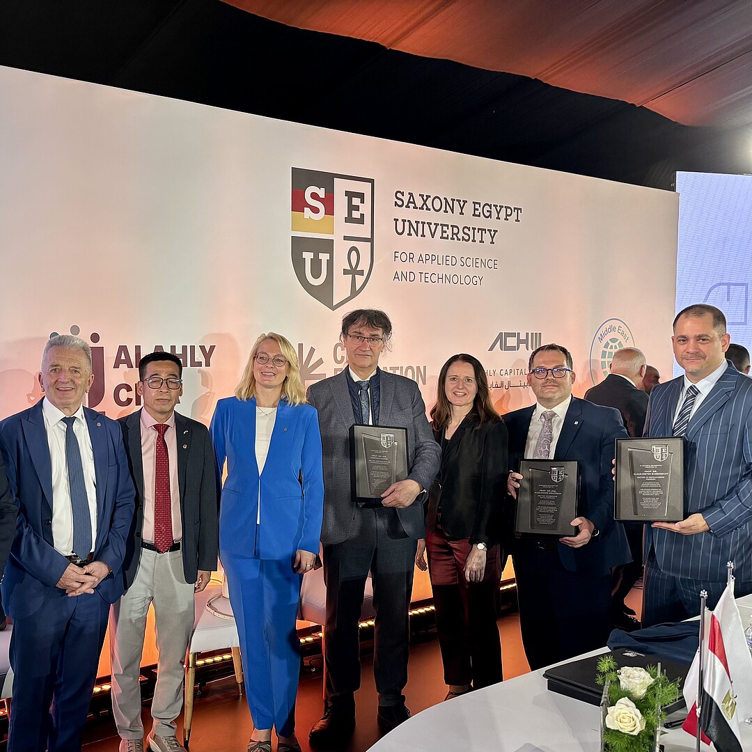 Im Rahmen der feierlichen Eröffnung der ersten sächsisch-ägyptischen Universität in Kairo - Saxony Egypt University for Applied Science & Technology (SEU) - haben der Freistaat Sachsen und Ägypten ihre Bildungskooperation deutlich ausgeweitet. Die Hochschule Zittau/Görlitz spielt dabei eine zentrale Rolle: Rektor Prof. Dr.-Ing. Alexander Kratzsch begleitete Ministerpräsident Michael Kretschmer auf dessen Reise nach Ägypten und unterzeichnete vor Ort eine Kooperationsvereinbarung (Memorandum of Understanding) mit der neu gegründeten Universität.