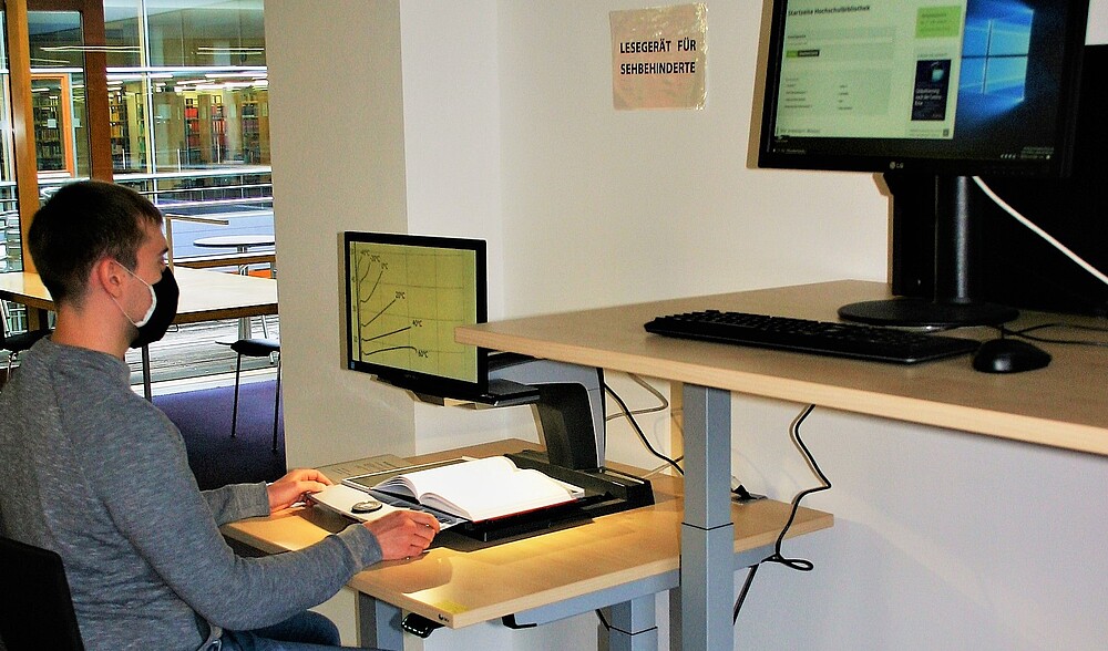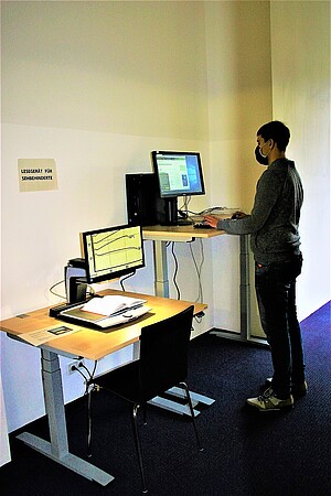 Besonders für Menschen mit Behinderung wurden 2 barrierefreie Hubtische angeschafft. Rollstuhlnutzer können jetzt mit den Armlehnen unter die Tischflächen fahren und sich die Arbeitsposition bestmöglich einstellen. Auch alle anderen Bibliotheksnutzer profitieren von den neuen Tischen.