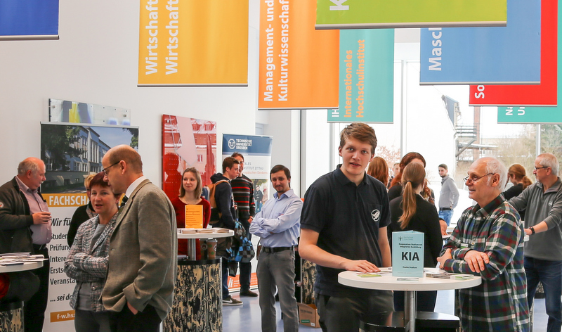 Im Anschluss konnten sich die Studieninteressenten im Foyer des Peter-Dierich-Haus, im Medien- und Gestaltungslabor (Haus IVa) sowie im Energielabor (Haus IVb) im Detail über die Studiengänge Betriebswirtschaft, Wirtschaftsingenieurwesen sowie Wohnungs- und Immobilienwirtschaft informieren.
