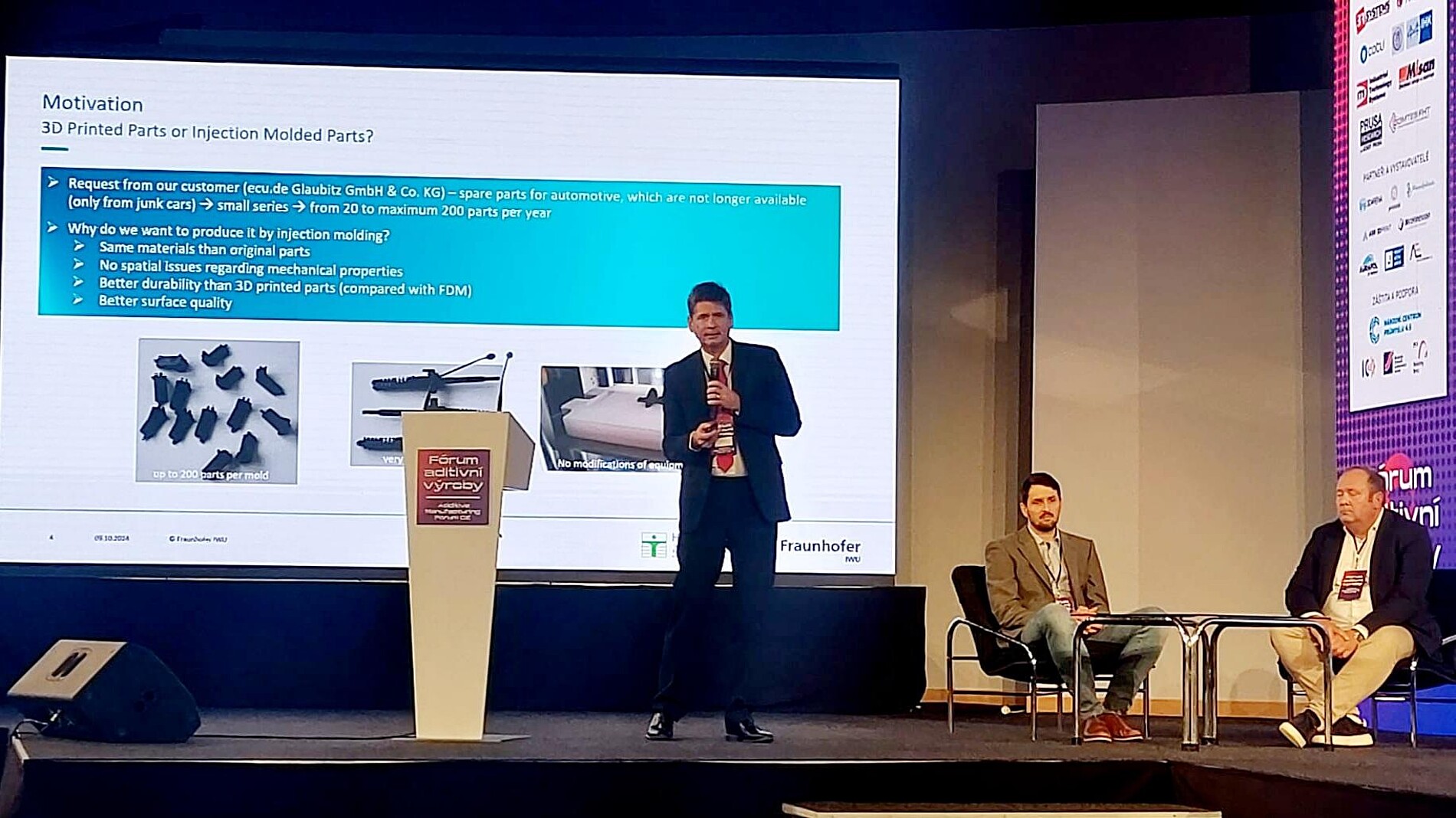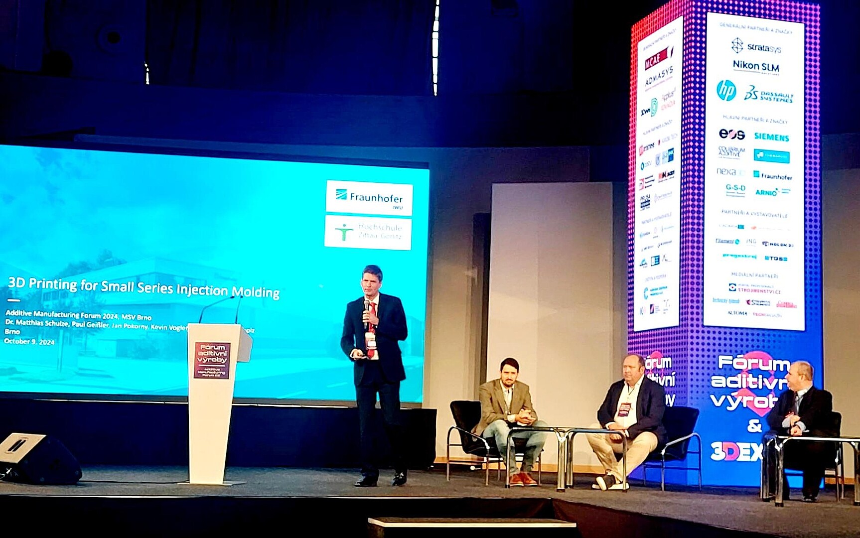 Dr. Matthias Schulze vom Fraunhofer IWU begann mit einem Einblick in die Anwendung von 3D-gedruckten Formen im Spritzguss. Er zeigte auf, wie das Fraunhofer IWU kosteneffiziente und anwendungsorientierte Lösungen für den Produktionssektor entwickelt, insbesondere für Regionen im Strukturwandel wie die Lausitz.