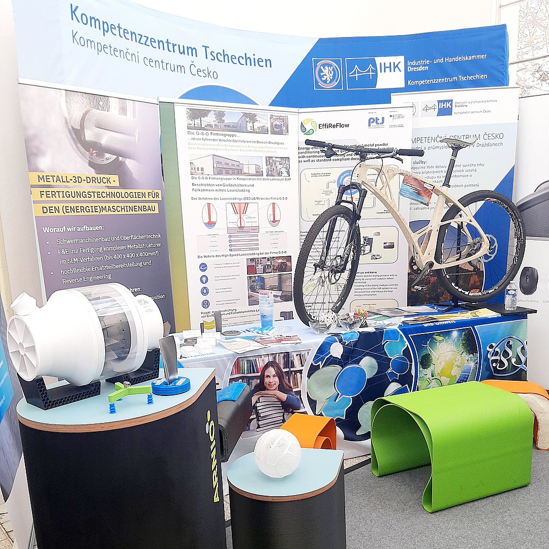Am gemeinsamen Stand „IHK Dresden & Friends“ bot sich den Teilnehmenden anschließend die Gelegenheit, sich über konkrete Kooperationsmöglichkeiten auszutauschen und die präsentierten Innovationen näher zu betrachten: