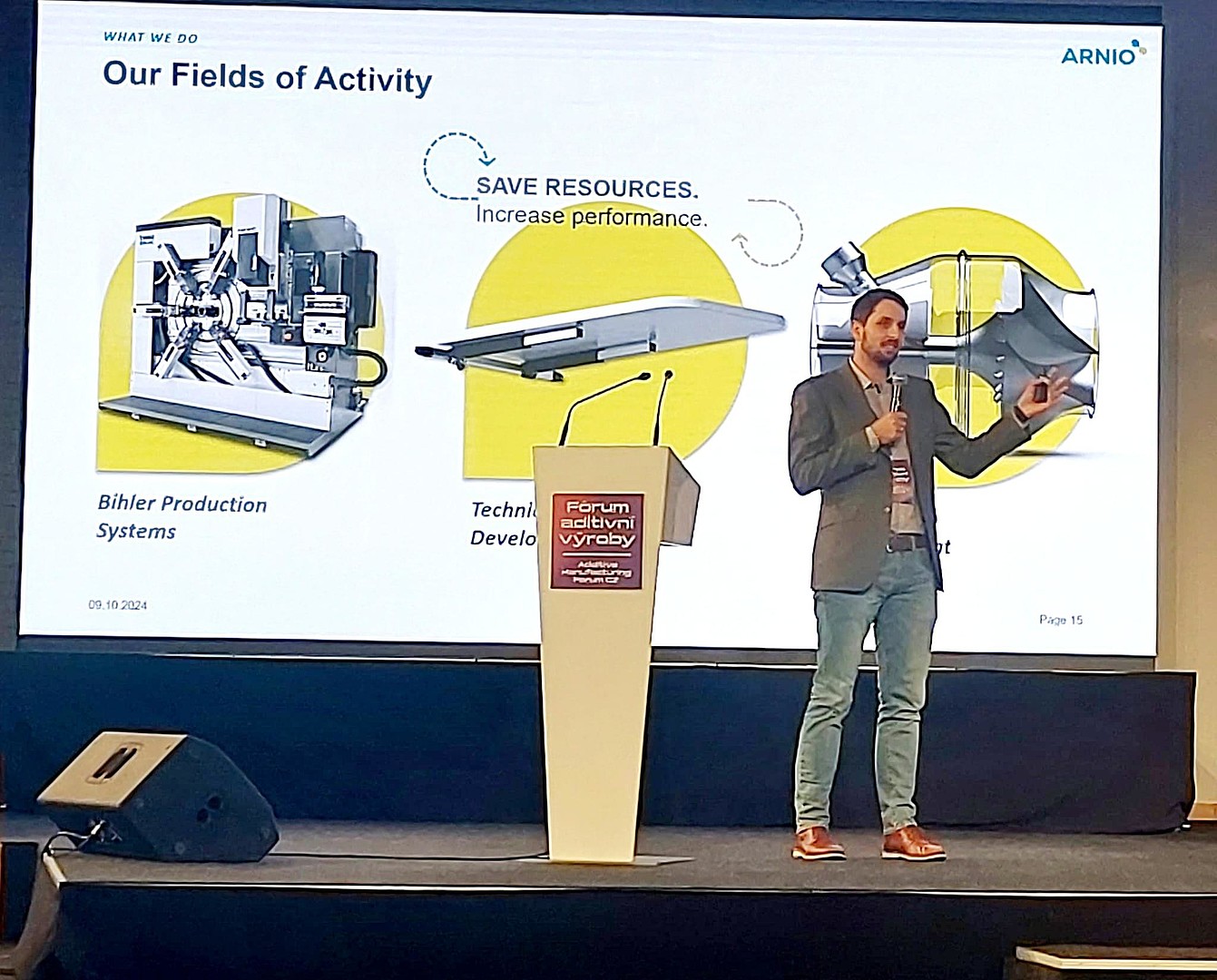 Im Anschluss stellte Philipp Beck von ARNIO ingenieurtechnische Anwendungen des 3D-Drucks vor. Sein Beitrag verdeutlichte, wie 3D-Druckverfahren im Maschinenbau und in der Produktentwicklung eingesetzt werden, um Bauteile zu optimieren und nachhaltige Innovationen zu schaffen. Ein Schwerpunkt lag dabei auf der Entwicklung neuer Produkte und Verfahren im Leichtbau und in der Digitalisierung.