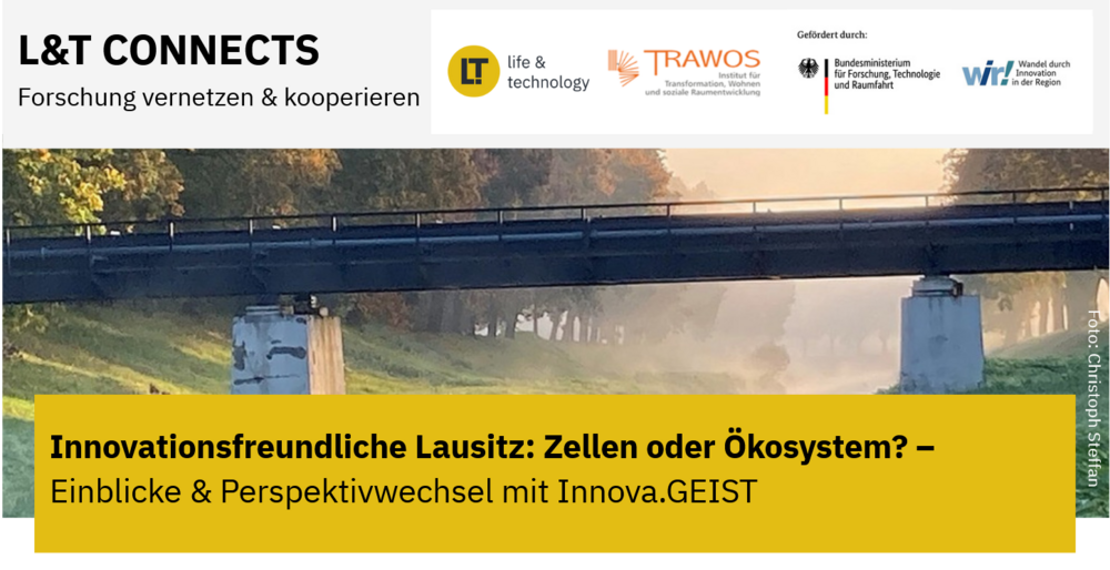 Am 27.10.2025 findet das nächste Netzwerk- und Transfertreffen der Veranstaltungsreihe L&T CONNECTS unter dem Titel „Innovationsfreundliche Lausitz: Zellen oder Ökosystem? - Einblicke & Perspektivwechsel mit Innova.GEIST“ im Jugend- und Soziokultur Zentrum RABRYKA in Görlitz statt. In der Lausitz trifft Wandel auf die Suche nach zukunftsfähiger, nachhaltiger Innovation. Das Projekt Innova.GEIST hat sich in den vergangenen eineinhalb Jahren genau dieser Herausforderung gewidmet und lädt nun im Rahmen der Veranstaltungsreihe L&T Connects dazu ein, neue Perspektiven einzunehmen. Im Mittelpunkt stehen die Formate „Innovakeln“ und „Innova.QUEST“, die dazu einladen, Routinen aufzubrechen, Fragen zu teilen und im Austausch Orientierung zu finden. Statt schneller Antworten geht es hier um produktive Suchbewegungen und darum, wie gemeinsames Weiterdenken in konkretes Handeln übergehen kann. Eingeladen sind Unternehmer:innen, Kommunen, Initiativen und Netzwerke, die Lust haben, Innovation nicht nur effizient, sondern auch nachhaltig zu gestalten. Abgerundet wird die Veranstaltung mit einer Führung durch die RABRYKA in Görlitz – ein lebendiges Beispiel dafür, wie soziale Innovation durch kulturelle Vielfalt, Beteiligung und Engagement Wirklichkeit wird.