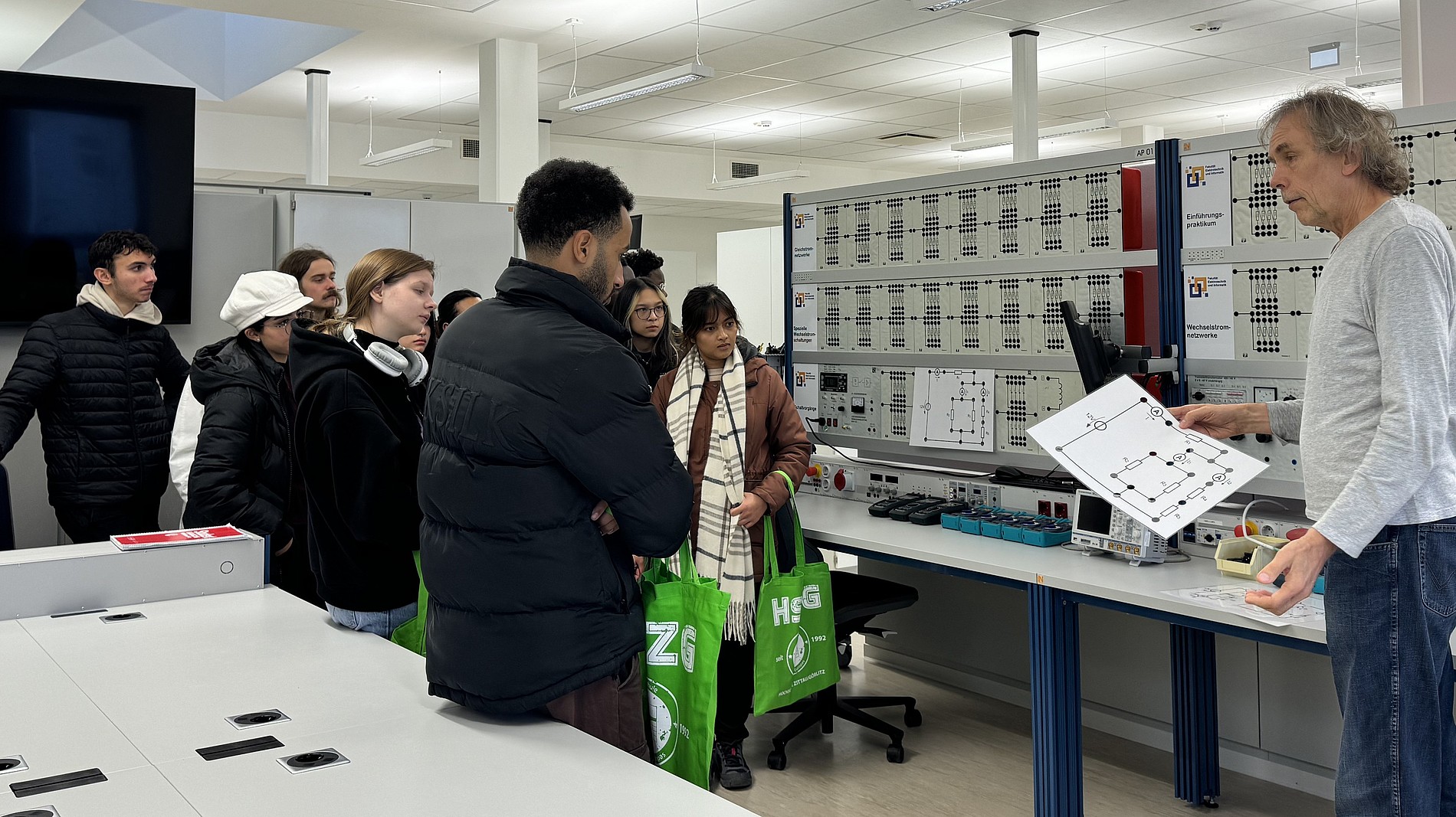Der Besuch startete mit einer Campus-Tour und Laborführungen, die den Kollegiatinnen und Kollegiaten die modernen Einrichtungen und die technische Ausstattung der HSZG näherbrachten. Am Abend wurden sie zum internationalen Abend in die Dezi-Bar eingeladen, bei dem das Rektorat gemeinsam mit den Kollegiatinnen und Kollegiaten, den internationalen Studierenden sowie den internationalen Mitarbeitenden der HSZG das aktuelle Wintersemester eröffnete. In entspannter Atmosphäre bot sich die Gelegenheit, miteinander ins Gespräch zu kommen und erste Einblicke in das Hochschulleben zu gewinnen.