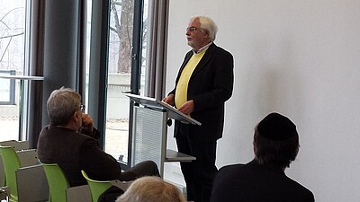 Im Rahmen eines Forschungsseminars über das jüdische Leben und das jüdische Erbe der Stadt Görlitz, geleitet von Dr. Sławomir Tryc und Rainer Michel, dem Leiter des Literaturhauses in der Görlitzer Alten Synagoge, fand am 20.12.2016 in der Görlitzer Aula der Hochschule ein Treffen mit Alexander Nachama, dem Rabbiner der Jüdischen Gemeinde in Dresden statt.