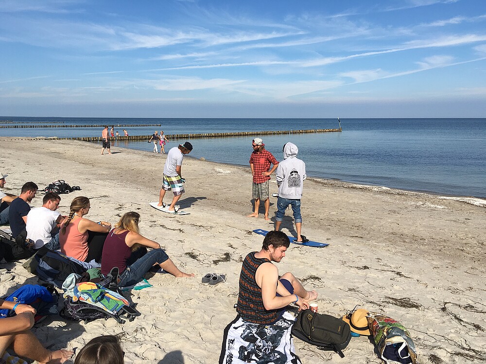 Vom 04.09. - 09.09.2016 war unser Hochschulsportzentrum mit 20 Studierenden im traditionellen Kitesurfcamp. Gemeinsam mit der HTW Dresden und der FH Zwickau (erstmalig dabei) waren insgesamt 50 Studierende mit, um das Kitesurfen zu erlernen. Der Wind hatte sich leider nur am Montag und am Freitag blicken lassen, deshalb wurde die Zeit mit Übungskites und der Theorie des Kitens verbracht. Die Stimmung war dennoch super und man konnte sich im SUP ausprobieren oder nach dem Theorieunterricht einfach die Zeit am Strand genießen.
