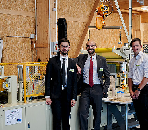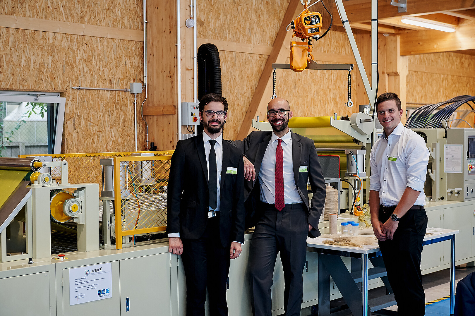 Die LaNDER³-Halle bringt damit exzellente anwendungsorientierte Forschung und wirtschaftliche Interessen an einem Ort zusammen. Auf engstem Raum lässt sich die gesamte Prozesskette von NFK abbilden und ganzheitlich erforschen: angefangen von der Fasergewinnung sowie der Faseraufbereitung und –funktionalisierung über die energieeffiziente Herstellung von NFK-Bauteilen bis hin zum Recycling und zur Wiederverwendung.