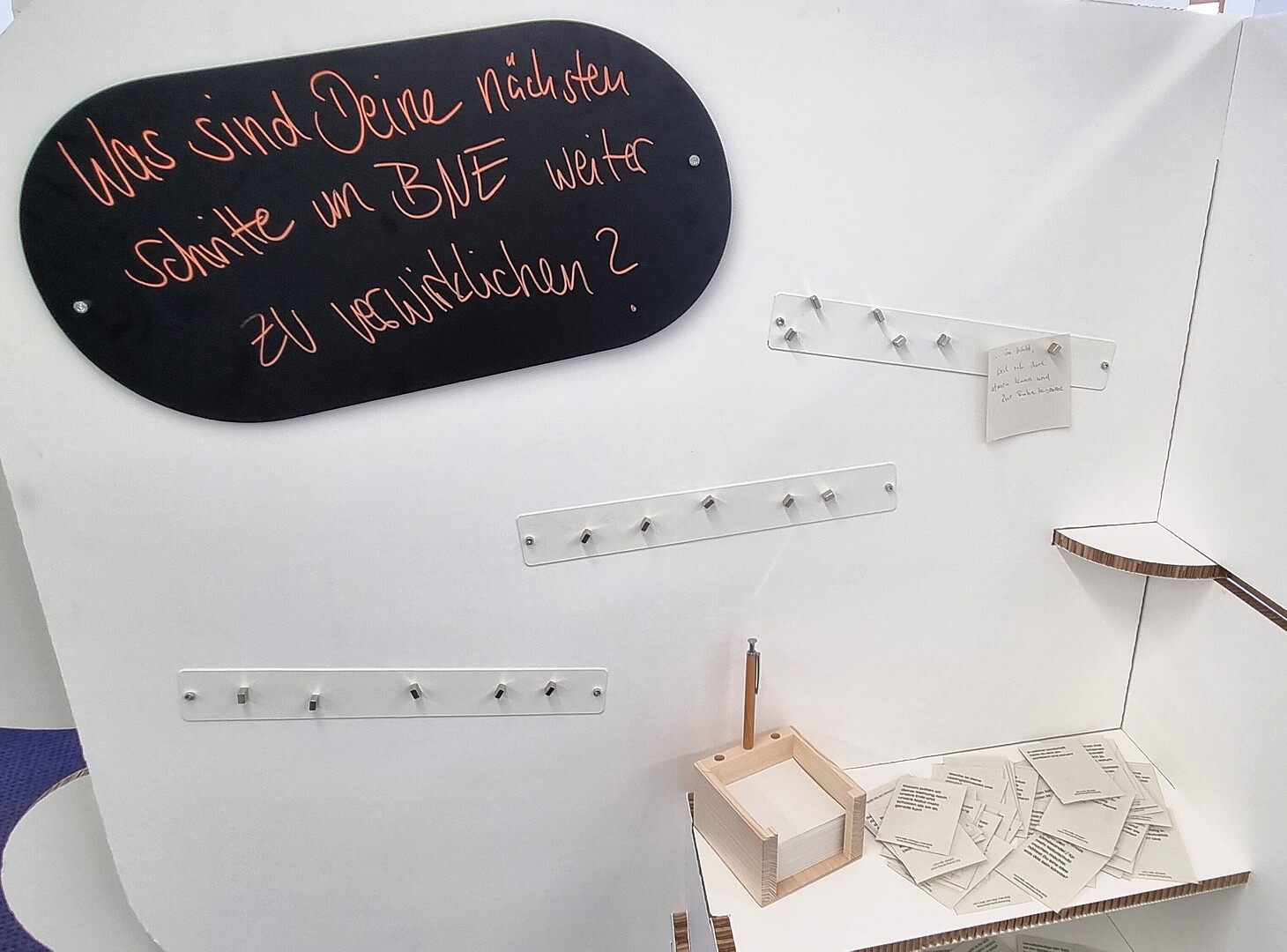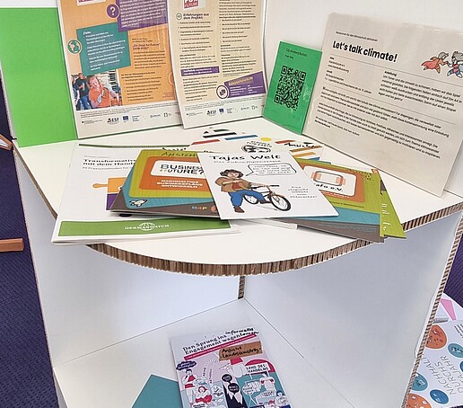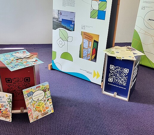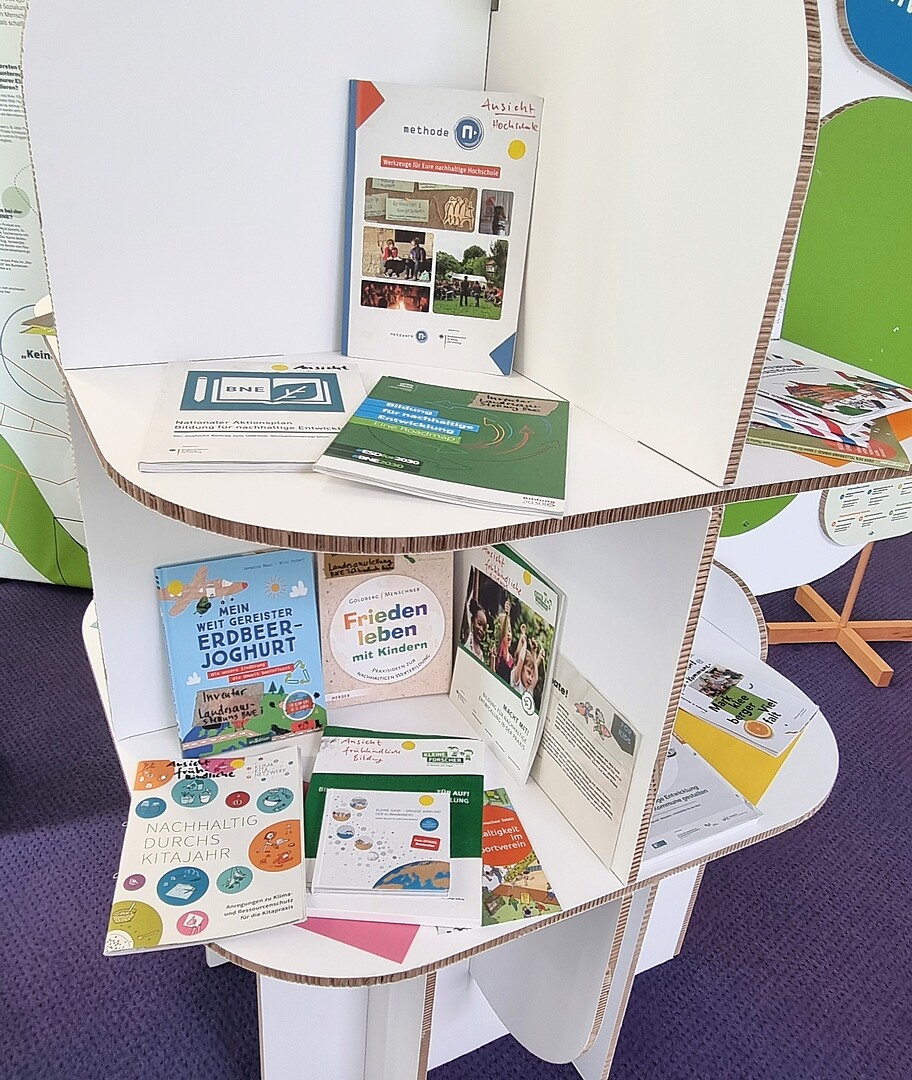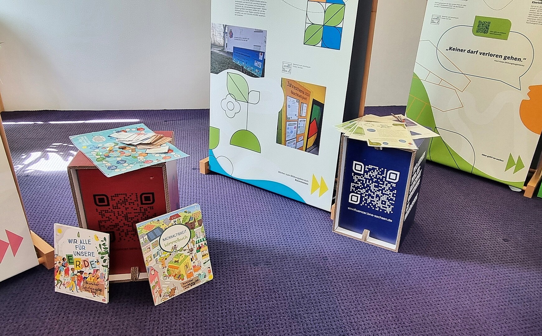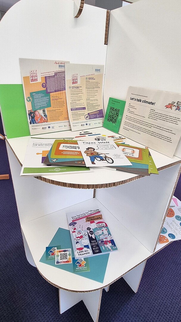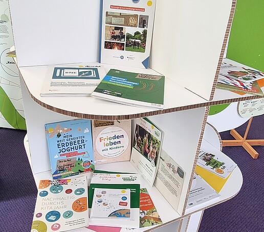 Die Ausstellung bietet außerdem viele Literaturanregungen und interaktive Gestaltungsmöglichkeiten für Kinder und Erwachsene zum spielerischen Kennenlernen und Vertiefen von Nachhaltigkeitsaspekten.