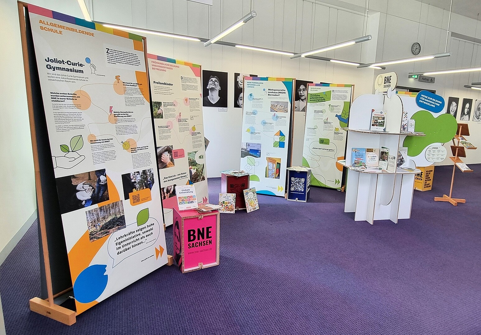 Besuchende bekommen für alle Bildungsbereiche einen Eindruck, was es in Sachsen schon alles gibt. Es werden Koordinierungsstellen, Publikationen, Fortbildungen, Events oder besondere Materialien für jeden Bildungsbereich dargestellt. Es präsentiert sich eine vielfältige Bildungslandschaft für Morgen.