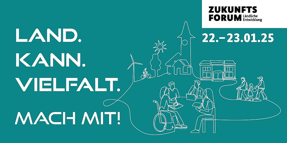 Das Zukunftsforum, das am 22. und 23. Januar 2025 im City Cube in Berlin stattfindet, steht unter dem Motto „Teilhabe, Demokratie und Zusammenhalt in ländlichen Regionen“ und bietet eine Plattform für den Austausch und Wissenstransfer unter den Akteur*innen der ländlichen Entwicklung.