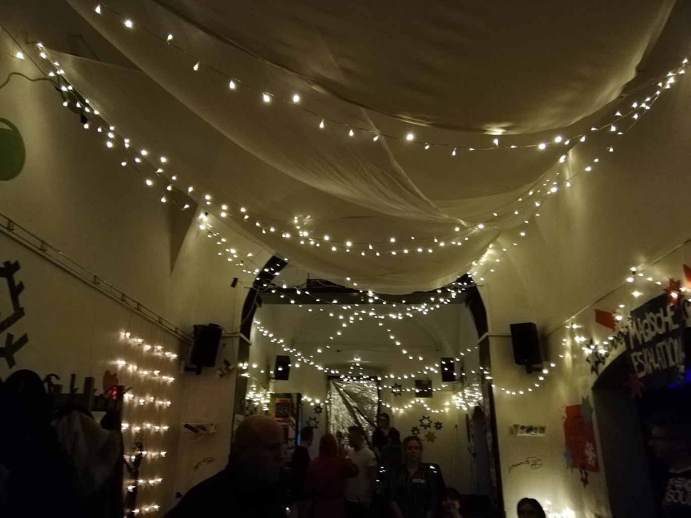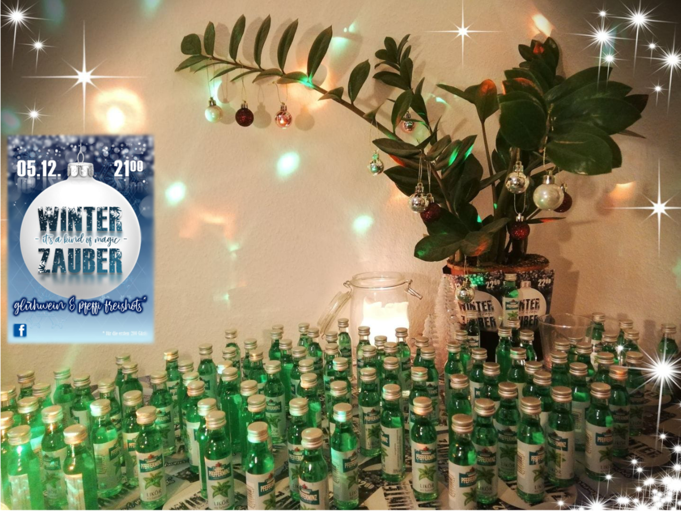 Von Herrn Hummel hörte ich nun, dass 2015 bei der Party, an die er sich zuerst erinnerte, diese schon alle Register an Aktionen gezogen hatten: Glühwein, Fotoecke und ein special Cocktail. Warum wussten wir das bei unserer Organisation nicht? Damals, 2018, fuhren wir mit einer Glitzer-Station, einem Unterschiftenboard, einer Photo Booth und dazugehörigen Requisiten auf. Außerdem natürlich dem obligatorischen Glühweinstand und einer ausgeklügelten Karten-Kennenlern-Aktion, die vor sah, sich als 4er Gruppe finden zu müssen, um dann einen Frei-Pfeffi zu bekommen (Sponsoring kann so einfach sein - einfach anfragen!). So sollte auch sichergestellt werden, dass das “Ice” gebrochen wird und man sich außerhalb seiner Clique bewegt. Das hat erstaunlicherweise sehr gut geklappt (auch wenn ich heute immer noch auf gefühlt 5000000000 Pfeffis sitze).