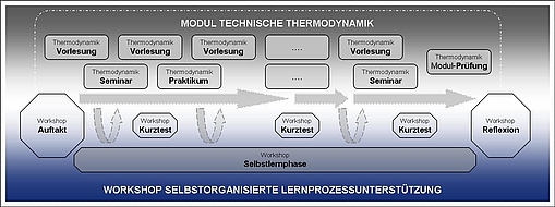 Dieses Lehr-Lern-Konzept hat das Ziel, die Studierenden in den Selbstlernphasen der einzelnen Studienfächer bzw. den individuellen Herausforderungen beim Lernen zu unterstützen. Mit thermoSOL trainieren die Studierenden in einem Modul ihres regulären Studiums die gezielte Auswahl und Anwendung von Lernmaterialien, die selbstständige Anwendung und Überprüfung des erlernten Wissens sowie die Ableitung von Handlungsbedarfen zur Lernzielerreichung in Kombination mit der Lernerkommunikation im virtuellen Raum. Es erfolgte die Erprobung der neu entwickelten Ansätze in Kooperation mit dem Fachgebiet Technische Thermodynamik (Prof. Dr.-Ing. habil. H.-J. Kretschmar). Weitere Informationen und die Ergebnisse des Projektes, z. B. Handlungsempfehlungen zu E-Assessment im MINT-Bereich, Optimierung der Online-Test-Software ONYX, DEMO-Kurs in OPAL, sind auf der Projektwebseite dargestellt.