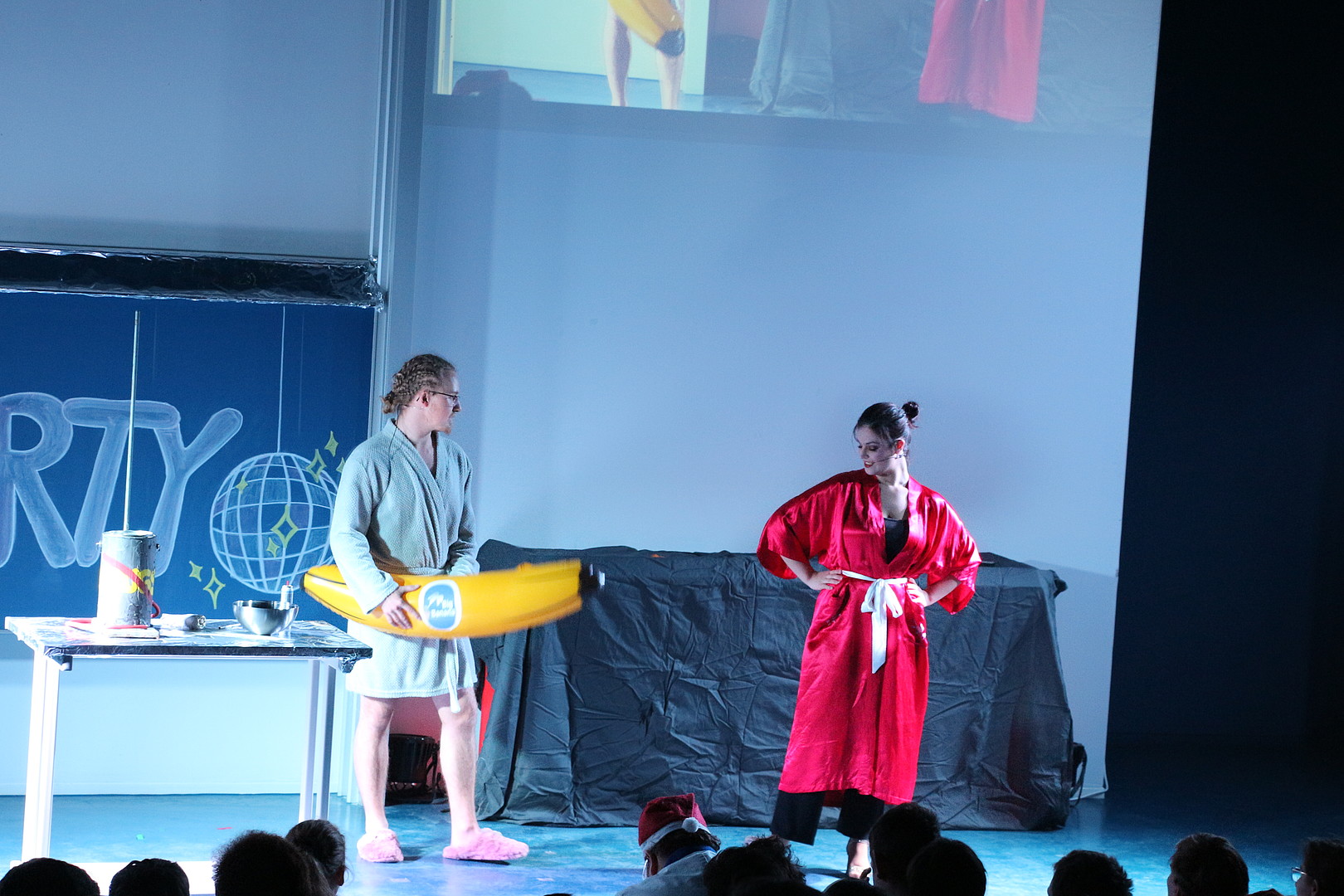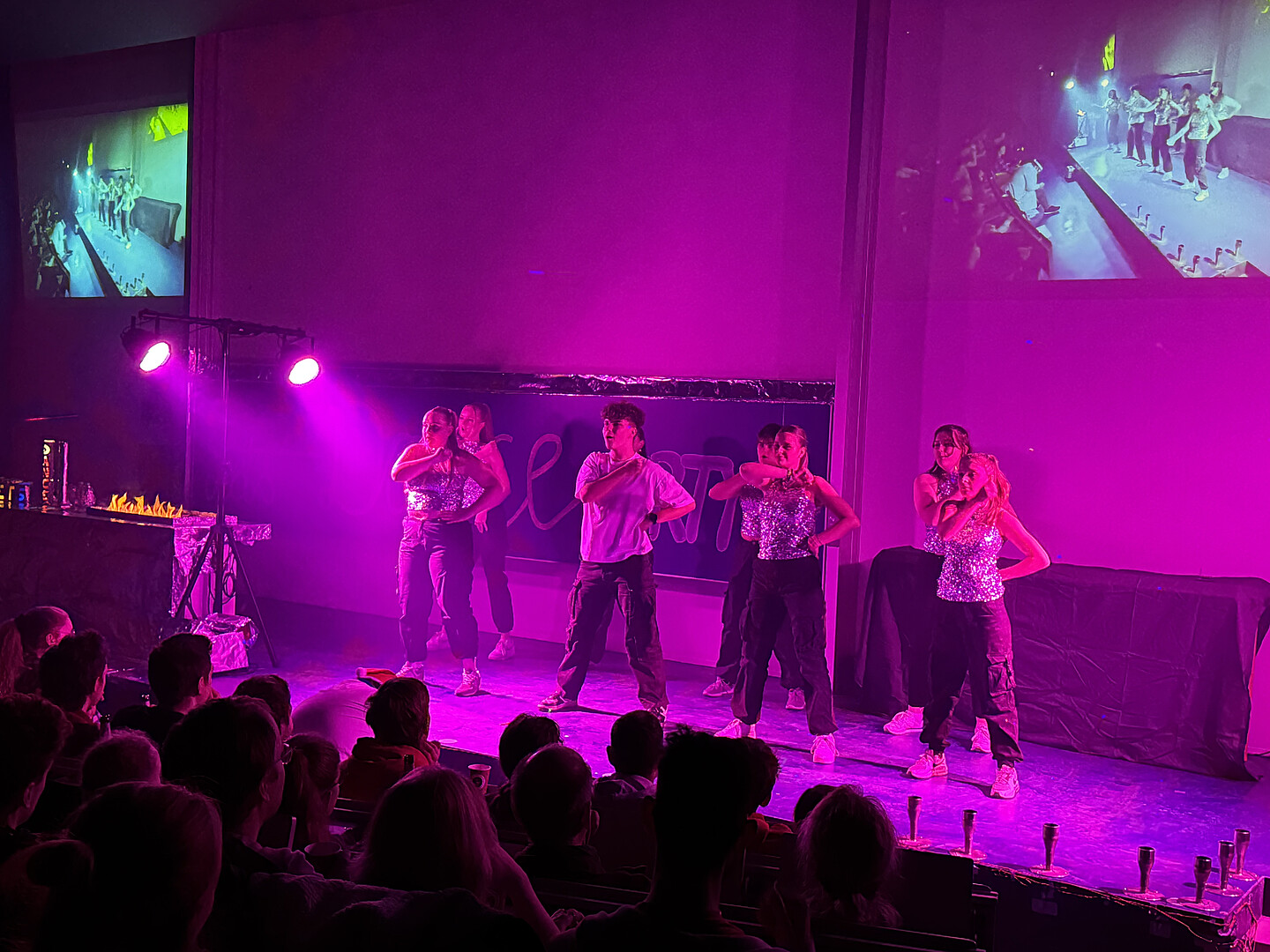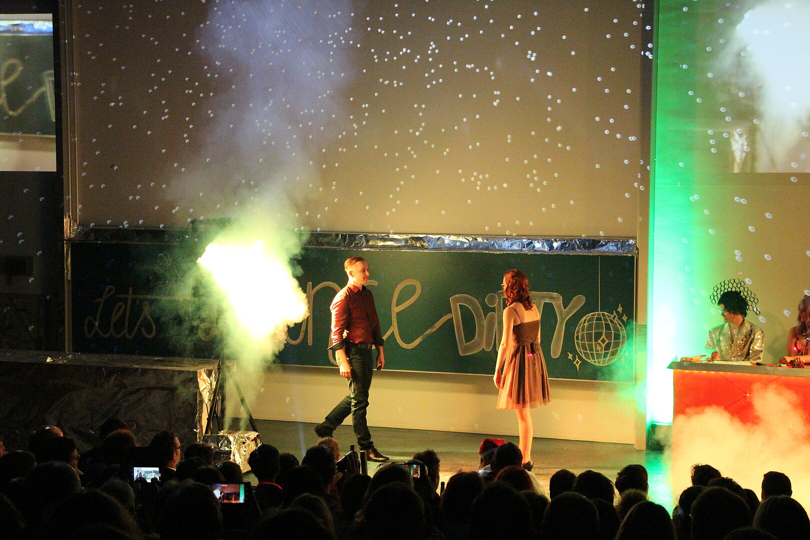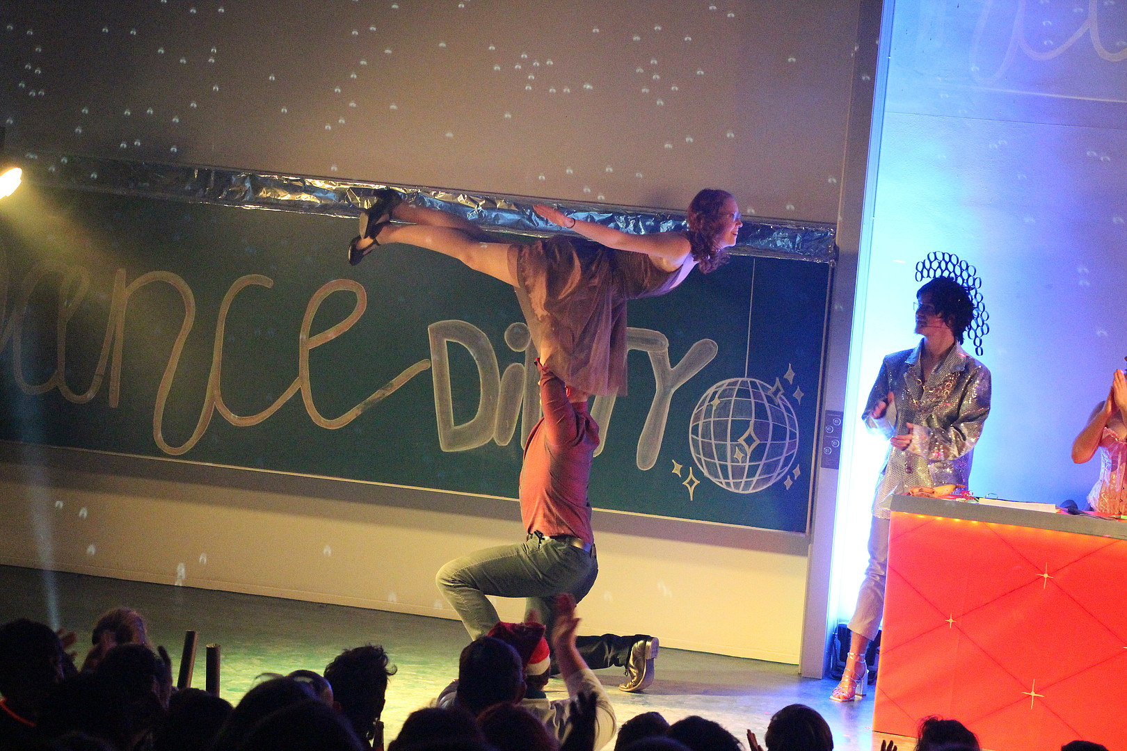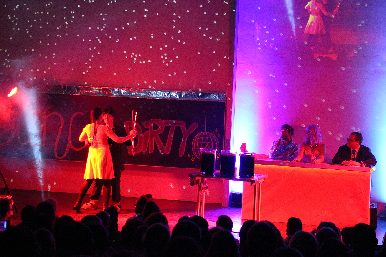 Zu Beginn heizte die Show- und Auftrittsgruppe "TABU" der Tanzschule Burghart dem Publikum ordentlich ein - ein Vorgeschmack auf die schwungvollen Rhythmen des späteren Tanzwettbewerbs, bei dem das Tanzpaar Ria Hübner und Anna Grohmann die Jury unter dem Vorsitz des gestrengen Jurors Herrn Llambi (Prof. Alexander Kratzsch) u. a. mit der Rumba von ihren Tanzqualitäten überzeugen wollte. Dem begeisterten Beifall des Publikums zum Trotz vergab Chefjuror Llambi nur mittelmäßige Punkte, fest überzeugt davon, dass ihn kein Tanz-Act der Welt zur vollen Punktzahl bewegen würde. Diese Rechnung hatte er aber ohne den weltbesten Mambo aller Zeiten des dritten Tanzpaares (Pia Schubert und Marc Gründer) gemacht, das zu "Time of my Life" mit ihrer finalen Hebefigur, sämtliche 80-er Jahre Herzen höher schlagen ließ und das jüngere Publikum nicht minder mitriss. Volle Punktzahl!