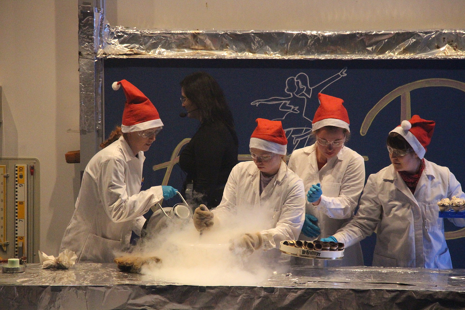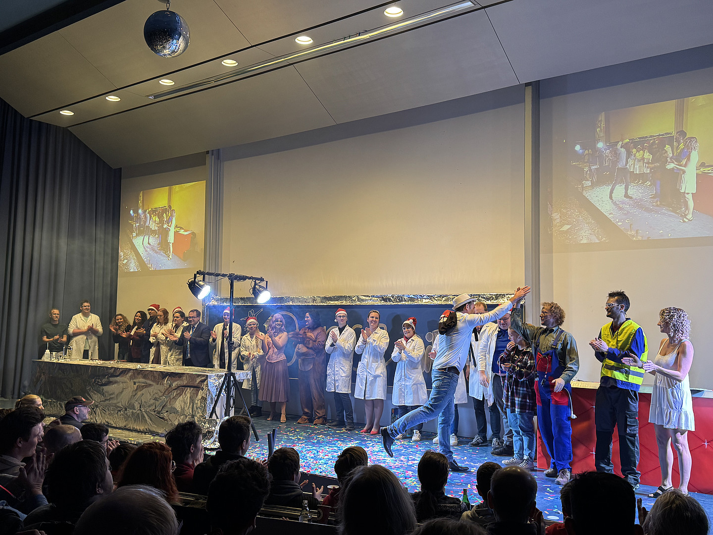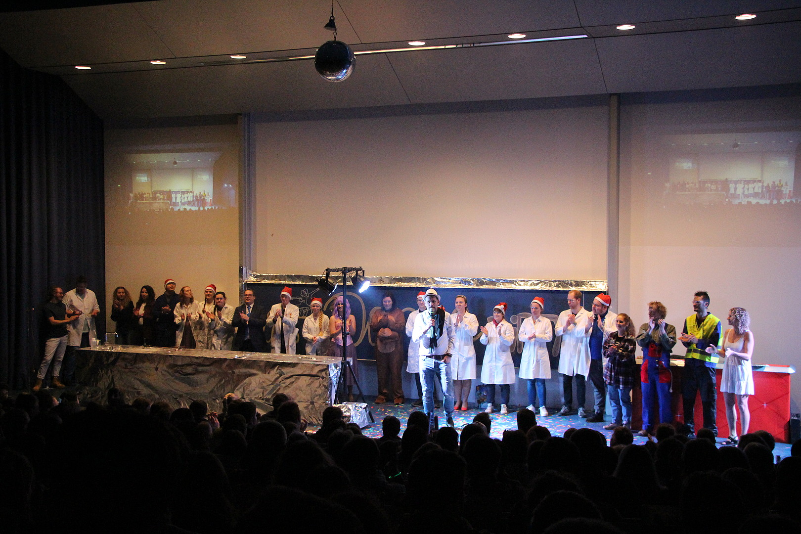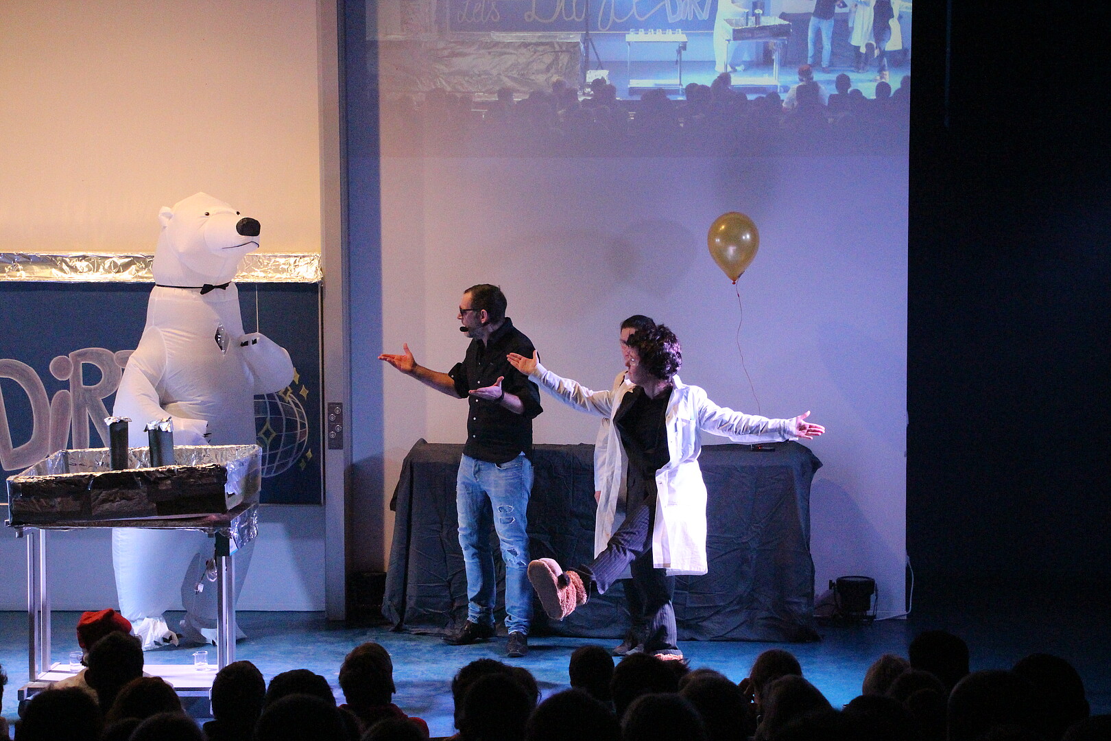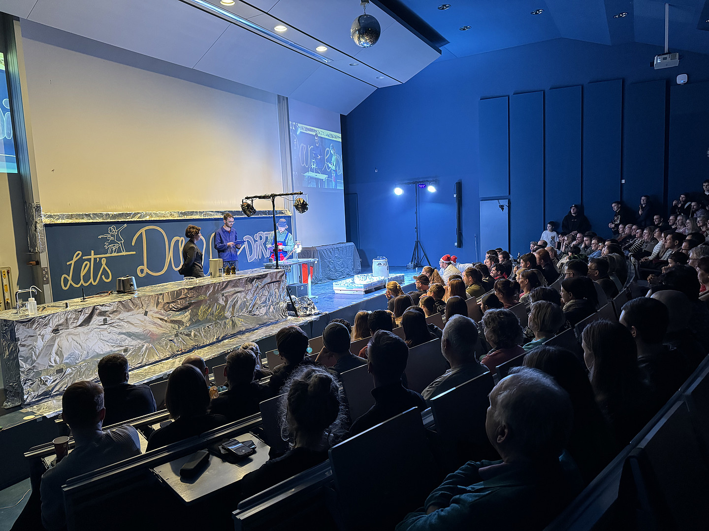 Als sich die Türen des Audimax um 16:30 Uhr öffneten, waren die Sitzreihen schnell belegt. Ob Hangover, Terminator oder Tanzbär - Jahr für Jahr bringt das Team der Chemie-Weihnachtsschauvorlesung das Publikum zum Staunen und verursacht herzhafte Lachanfälle. Der mdr-Hörfunk war in diesem Jahr zu Gast und berichtete im Anschluss an die Veranstaltung. Die Redakteurin zeigte sich vom Ideenreichtum der Darsteller*innen begeistert. Bei so viel Aufmerksamkeit, gehen einem da nicht langsam die Ideen aus? Ganz bestimmt nicht! Denn nach der Schauvorlesung ist vor der Schauvorlesung.
