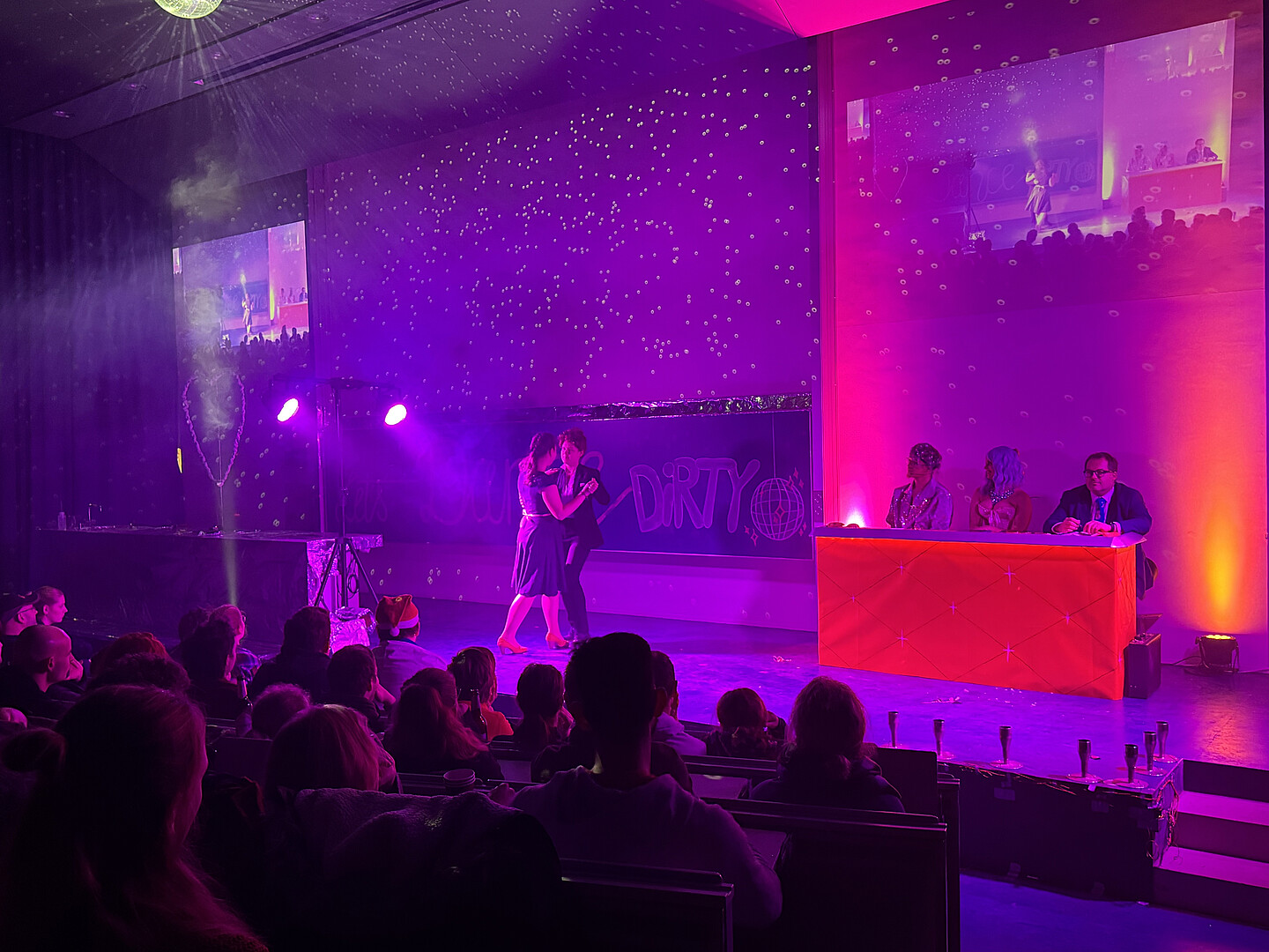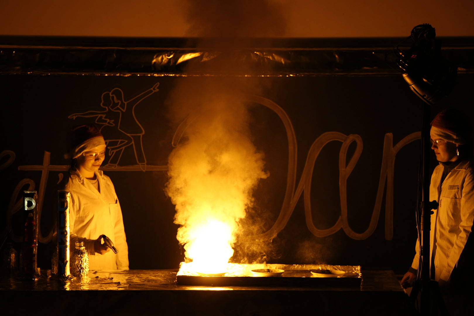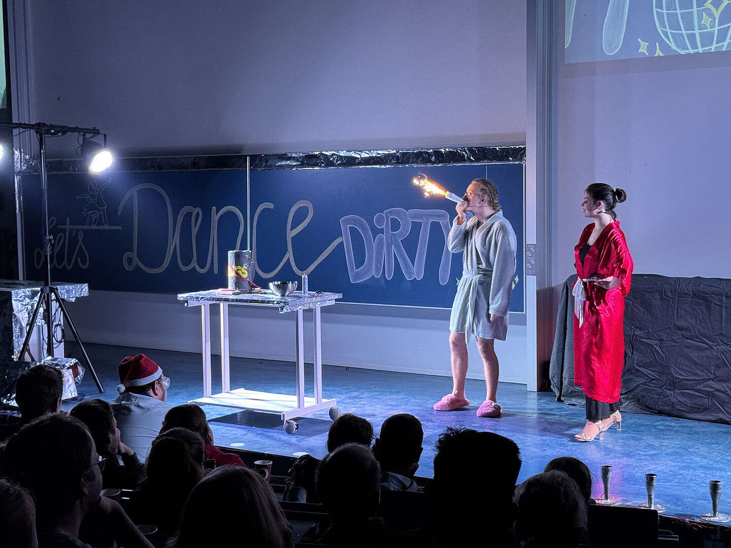 Die Schauvorlesung mit dem Team rund um Laborleiter und Hauptverantwortlichen Matthias Jeschke entführte das Publikum in die Geschichte eines gescheiterten Tanzschulbesitzers am Zittauer Campus, dem Tanzbären Detlef D Massimo, der mit Hilfe des charismatischen Tanzlehrers Johnny Castle und eines spannenden Tanzwettbewerbs neuen Schwung in sein Leben bringen will. Neben witzigen Dialogen und einer mitreißenden Handlung brachten faszinierende Chemieexperimente die Bühne zum Leuchten und Beben. Special Guests wie der Rektor der HSZG, spektakuläre Effekte und jede Menge Humor rundeten das Programm ab.