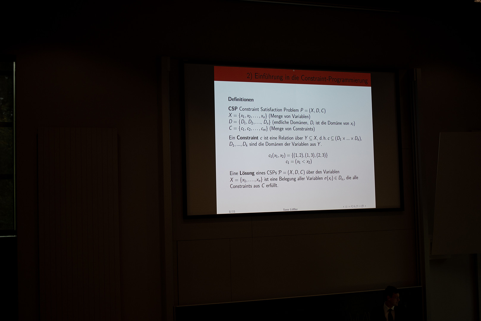 In Fachvorträgen gaben Prof. Dr.-Ing. Lässig (HSZG) in der Einleitung und Moderation, Prof. Dr.-Ing. Ringwelski (HSZG) weiter vertiefend und Herr Löffler (BTU Cottbus/Senftenberg) spezifisch auf die Constraint Programmierung, Einblicke in die Historie, den aktuellen Stand, Anwendungen und Ausblicke der Künstlichen Intelligenz.