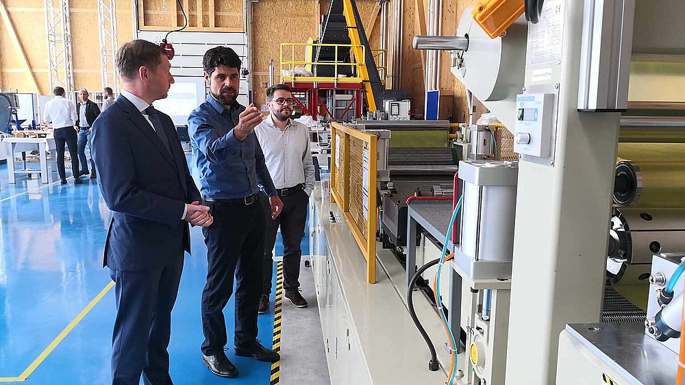 Am Montag den 20.07.2020 trafen sich der Ministerpräsident Michael Kretschmer und der Landtagsabgeordnete Dr. Stephan Meyer mit Akteuren der LaNDER3-Partnerschaft und dem Prorektor Forschung der der Hochschule Zittau/Görlitz, Prof. Raj Kollmorgen im Naturfaserzentrum der HSZG.