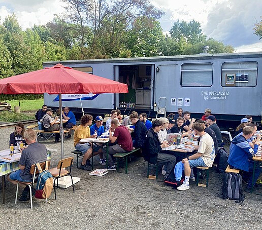 Der zweite Tag stand ganz im Zeichen der Bahn. Die AG Grubenbahn am Olbersdorfer See bot interessante Einblicke in die regionale Kultur- und Technikgeschichte. Auch eine Fahrt mit der Grubenbahn durfte da nicht fehlen. Gemeinsame sportliche Aktivitäten rundeten den Tag ab, die den Teamgeist der Teilnehmenden nochmals besonders stärkte.